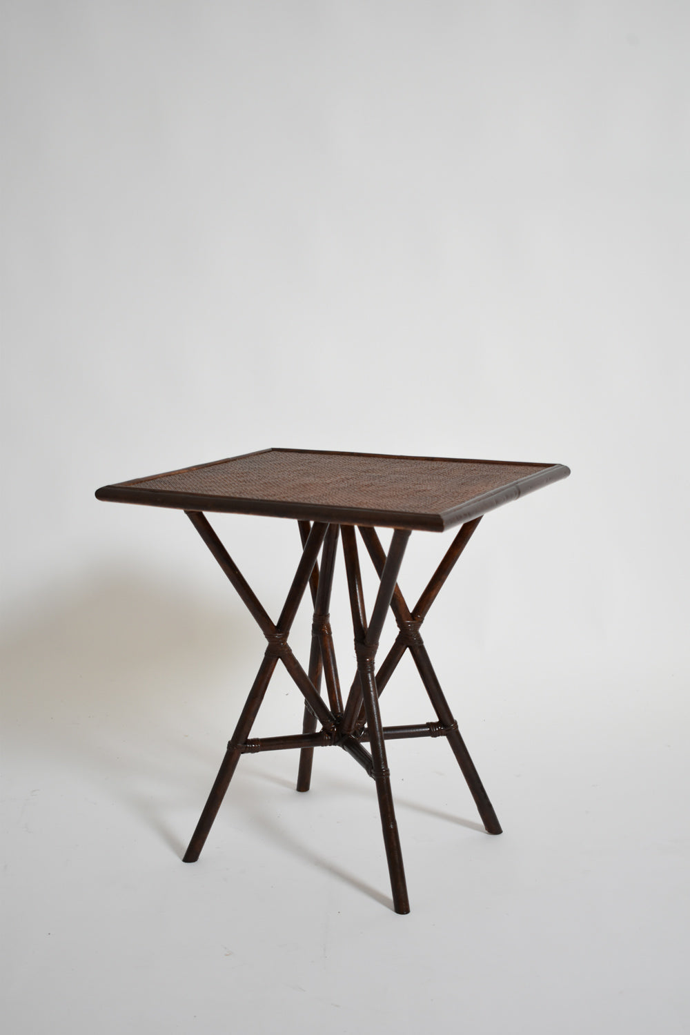 "Arrabida" brown rattan tea/bedside table standing on four crossed legs, Barracuda edition. Made in Portugal.All Barracuda Edition pieces can be personalised for the convenience of each interior design project.