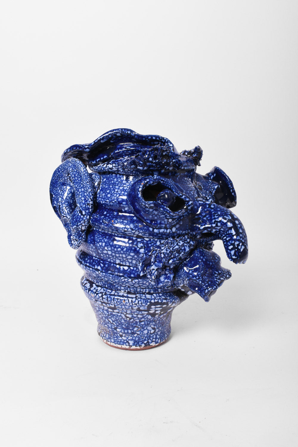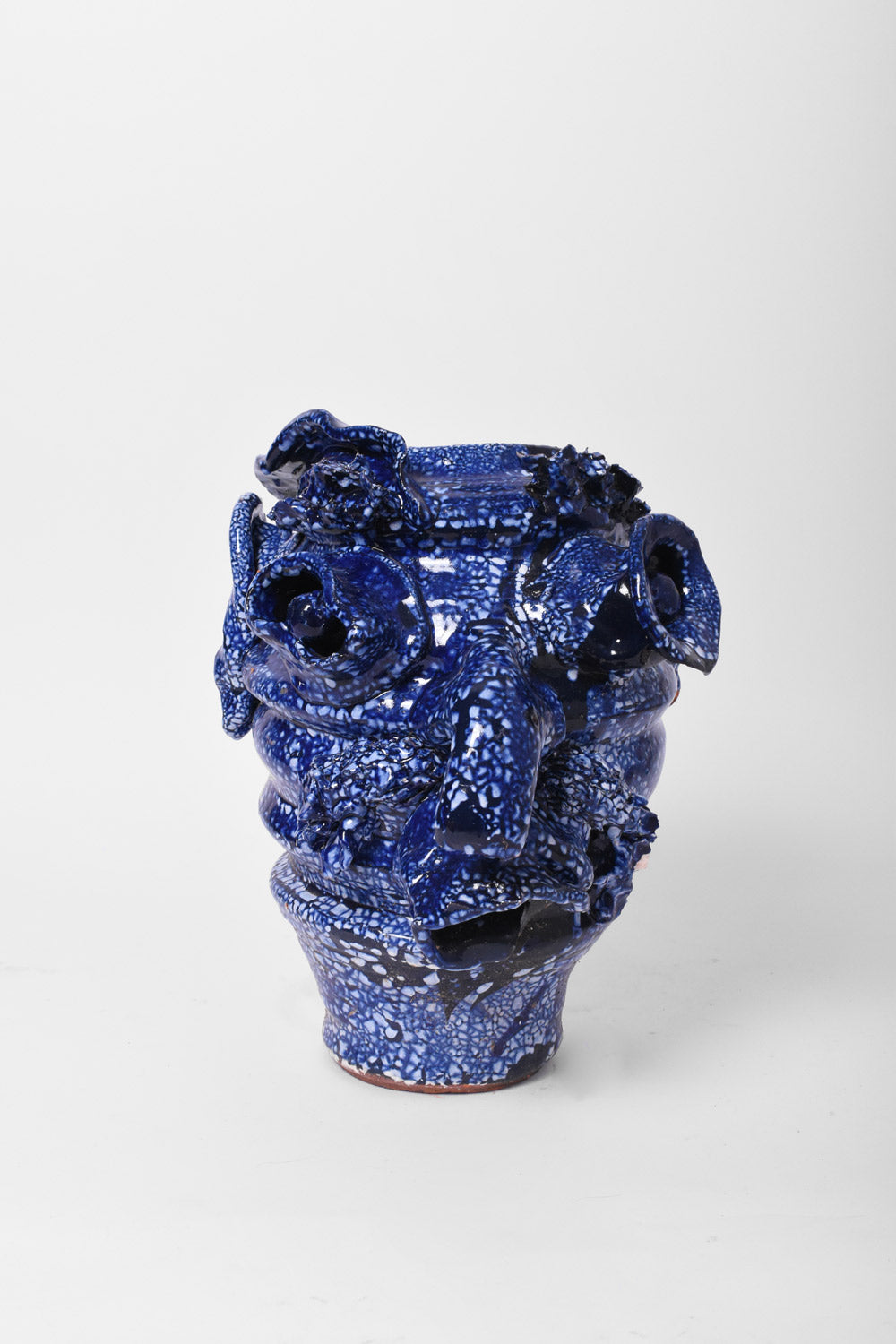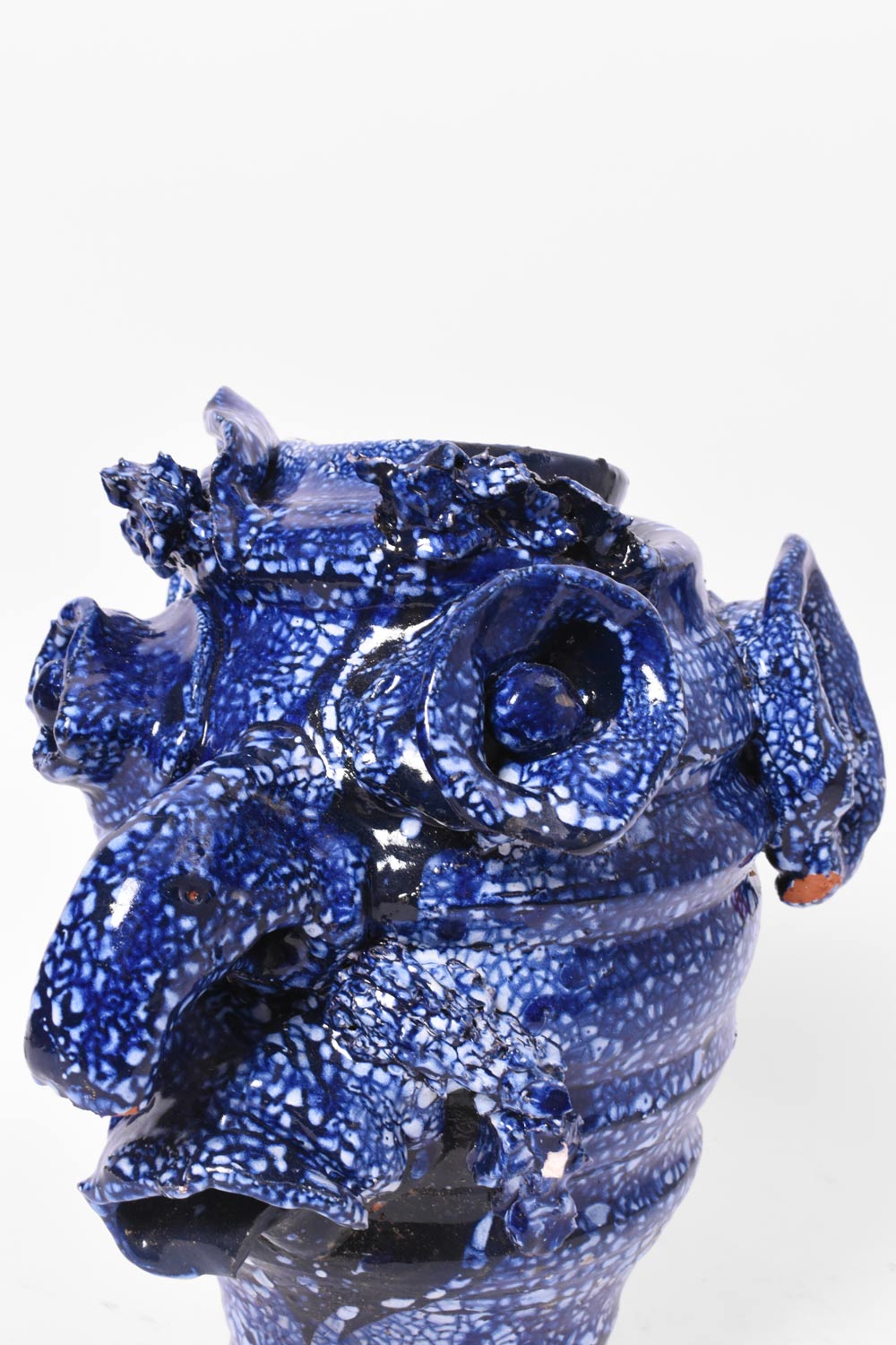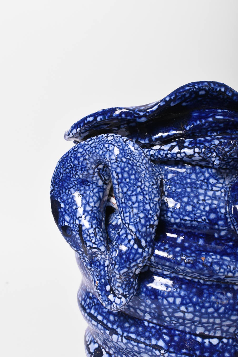 Anthropomorphic blue ceramic vase representing a man face, Helder. Portugal, 2023.
