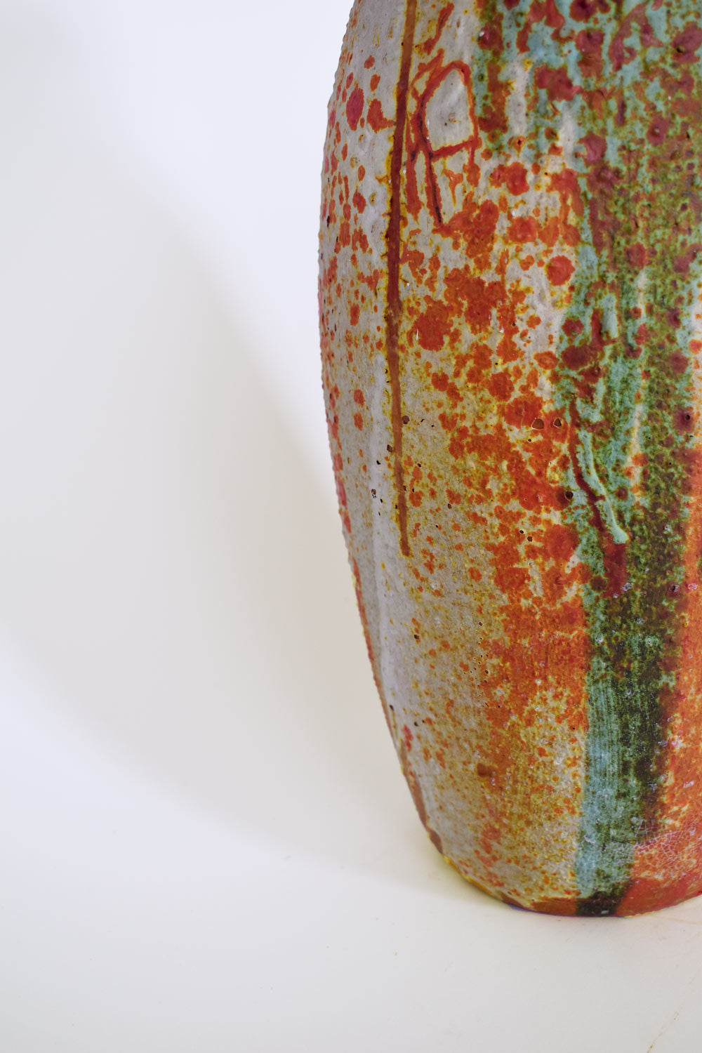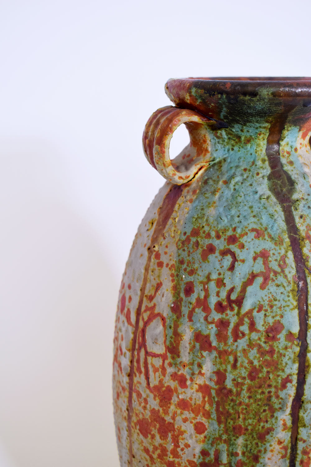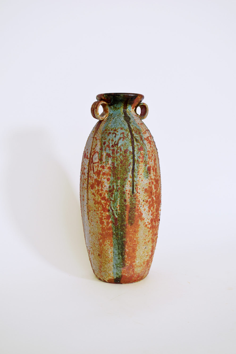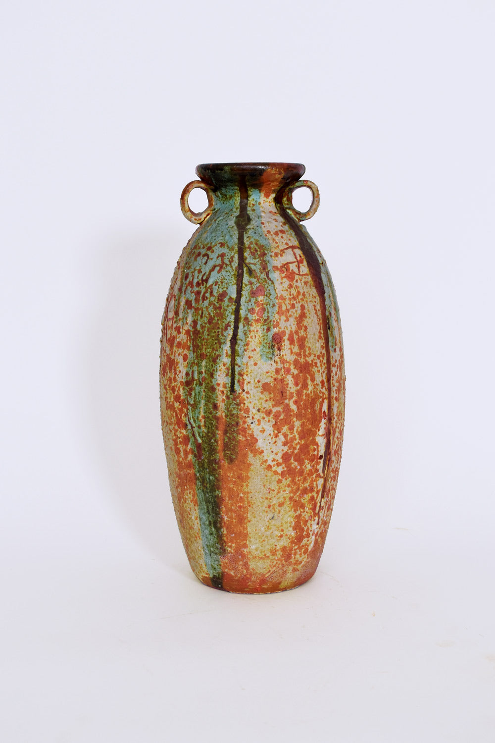 Ceramic vase with two handles decorated with drips, Claudio Pulli. Italy, 1970s.