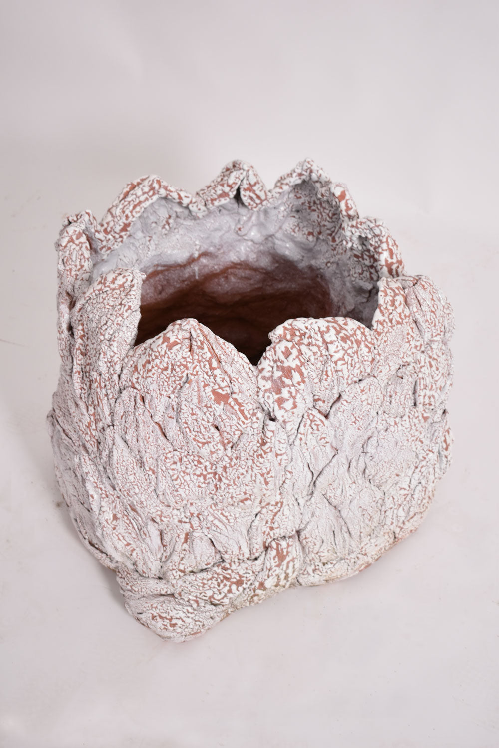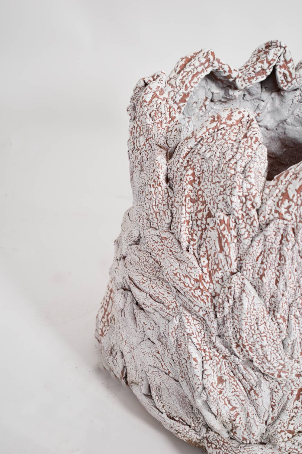 White glazed ceramic planter with an organic pattern, by Helder. Portugal, 2023.