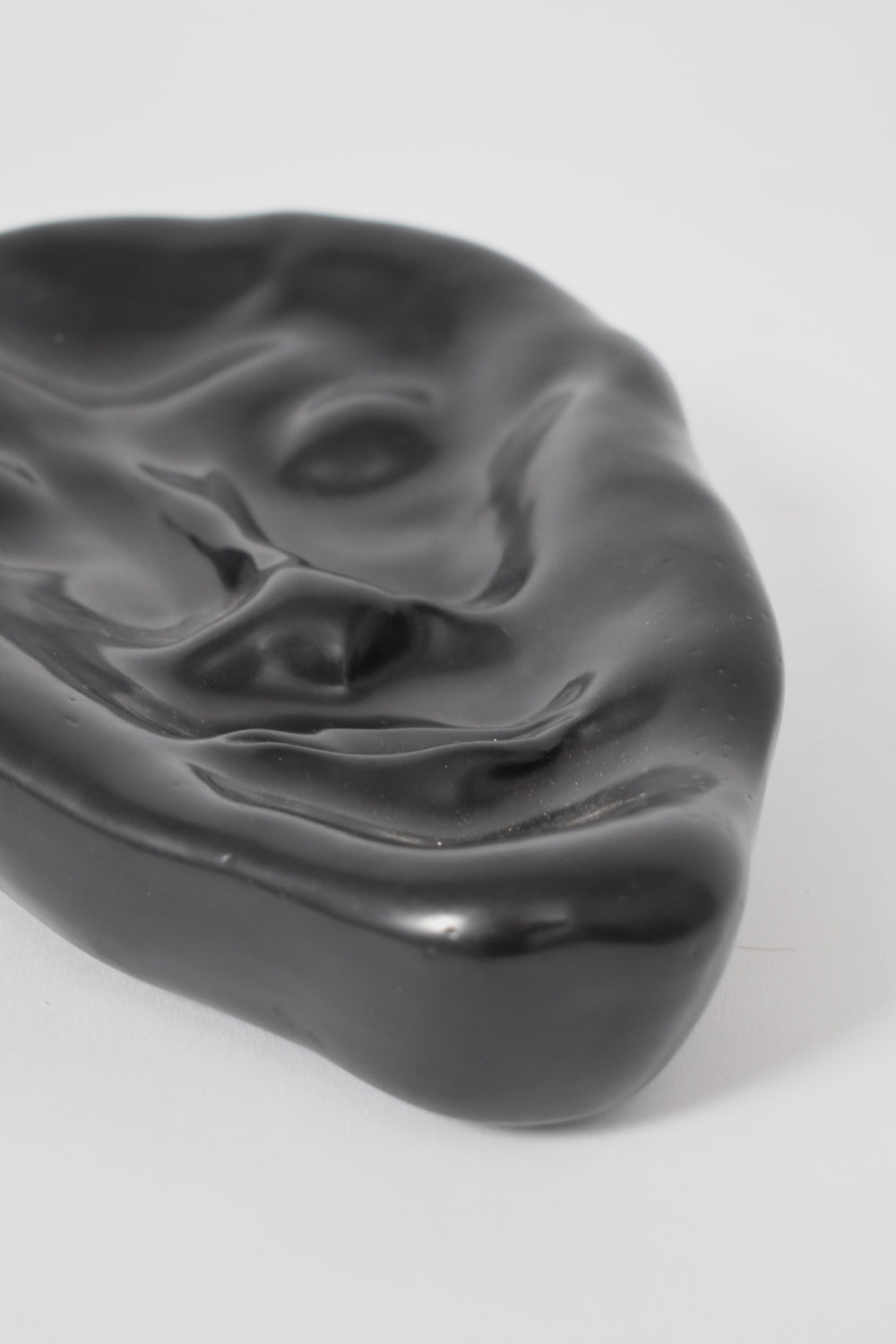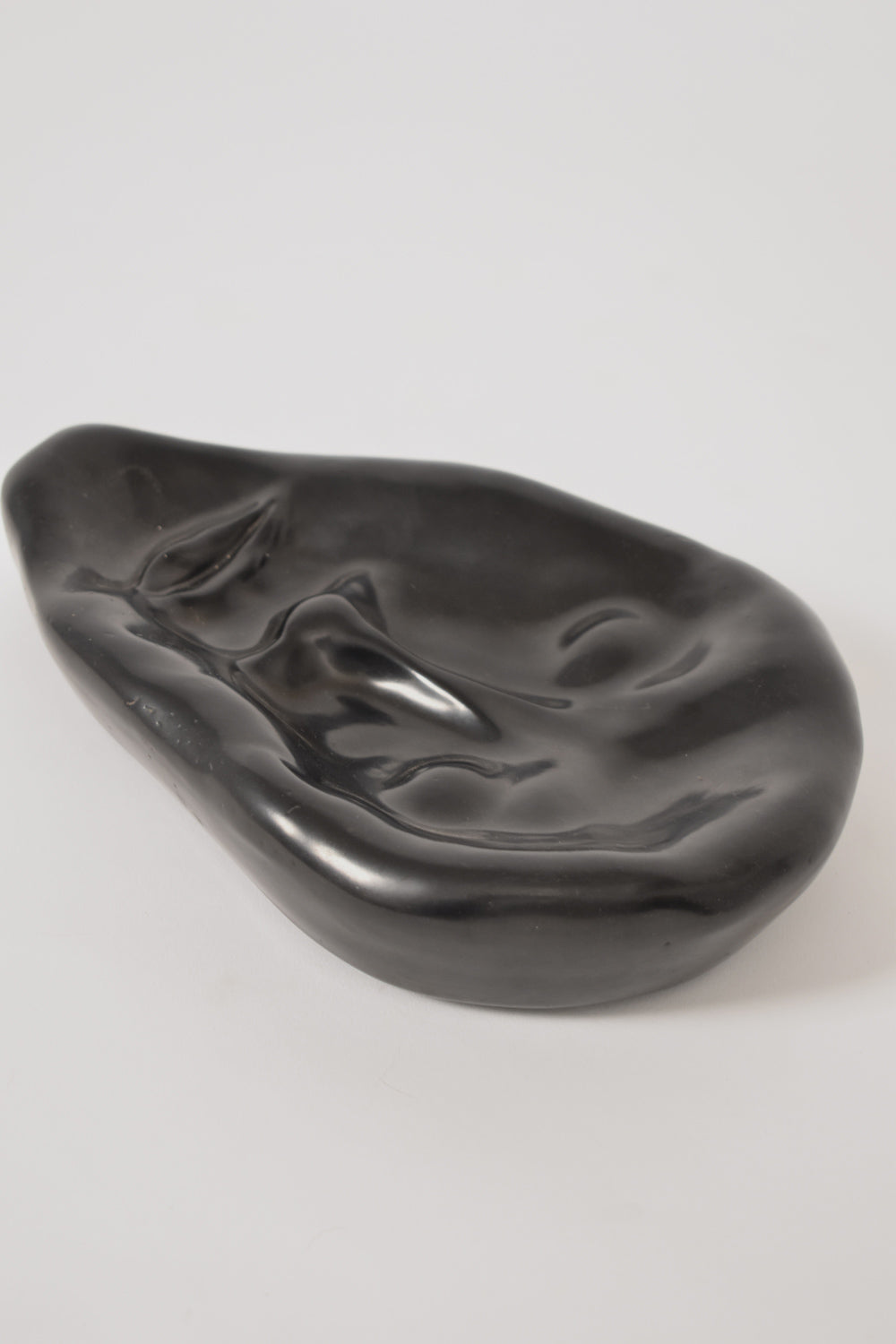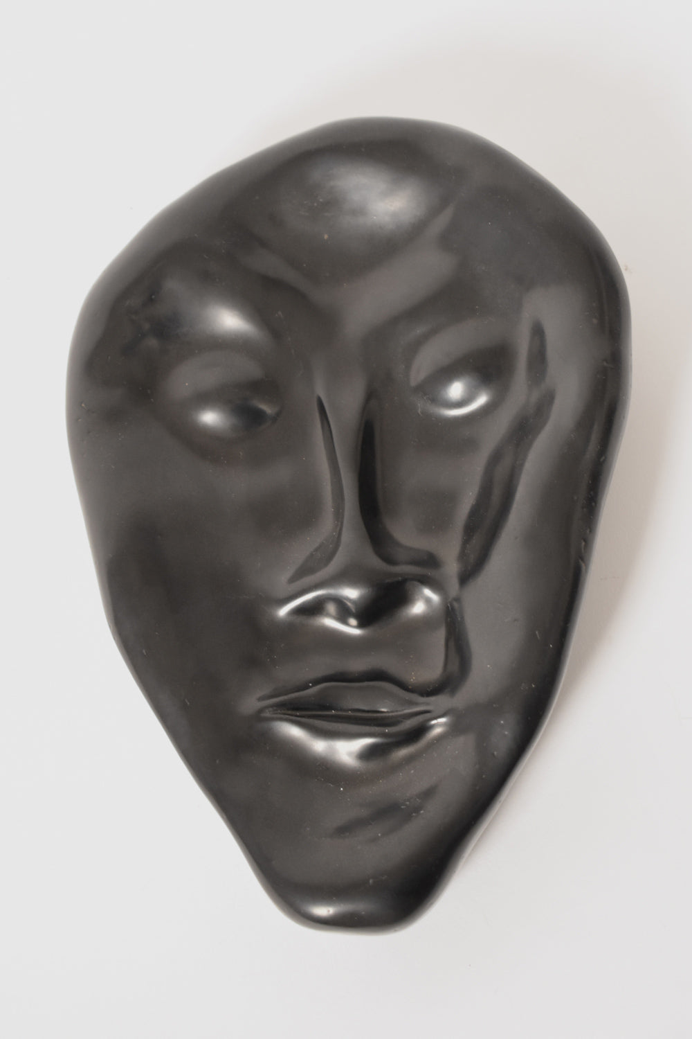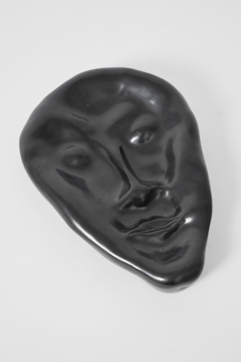 Anthropomorphic black ceramic plate representing a face. Signed H. Breda. Spain, 1970s.