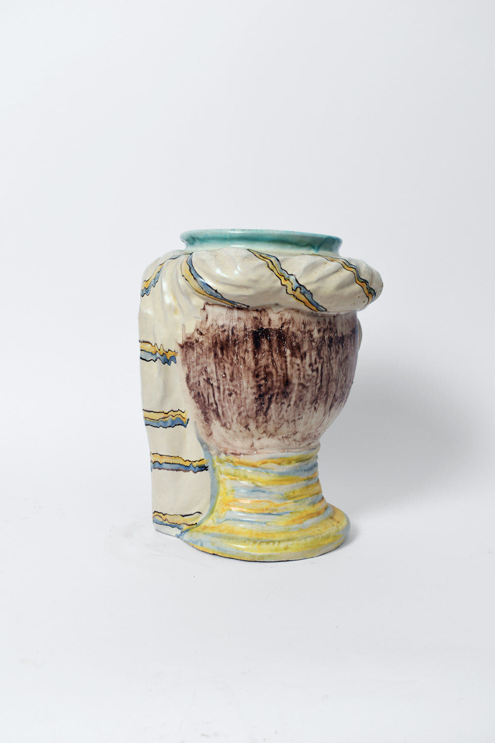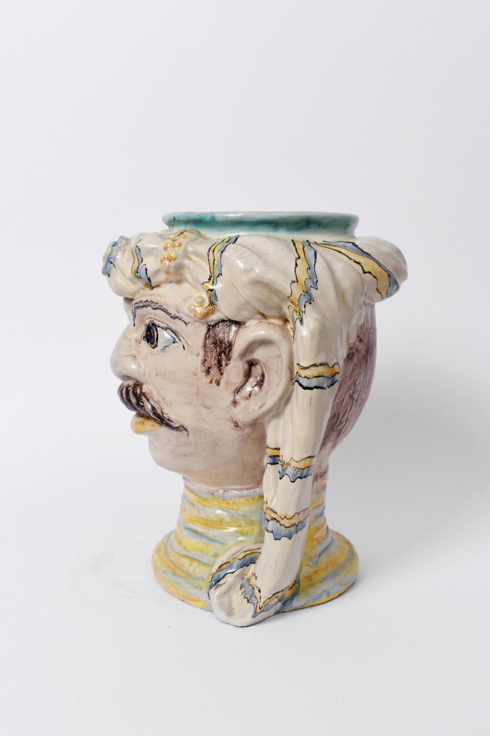 Cache pot, polychrome ceramic earthenware vase representing a Moor, bears the inscription "Opal C. STURZO Caltagirone". Italy, 1970s