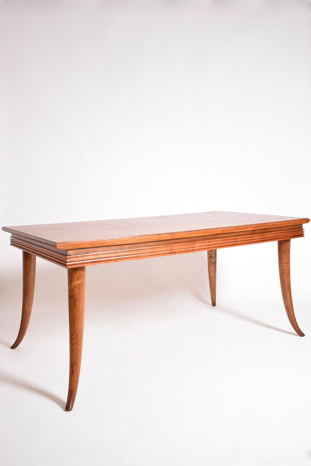 Etruscan style four horns feet rectangular wooden dining table, or desk, or console. Italy 1960s.