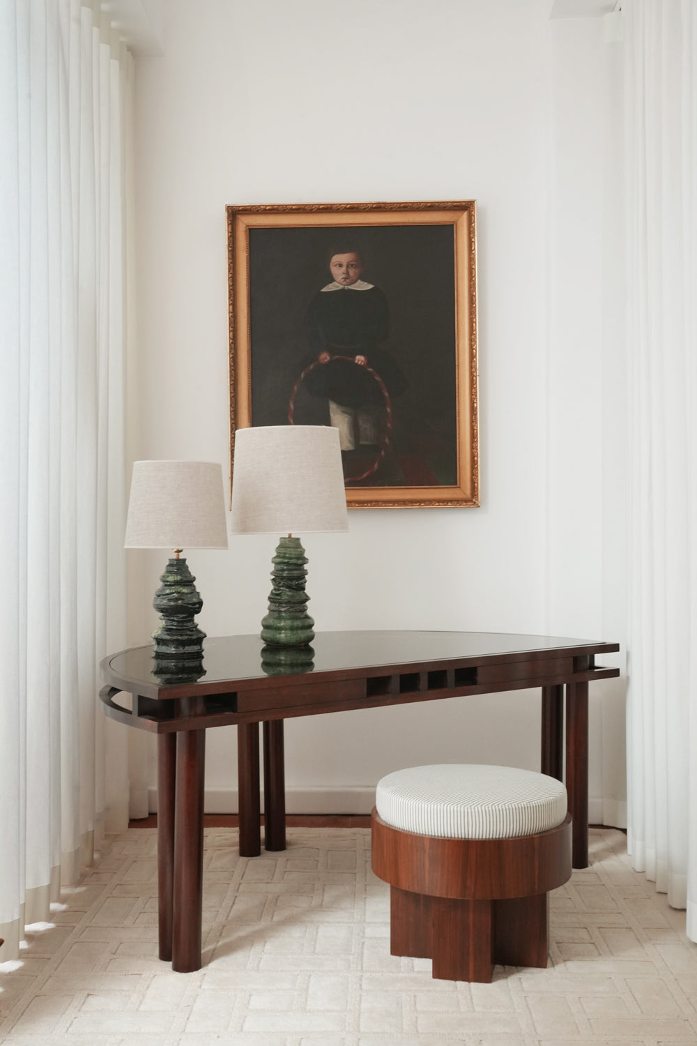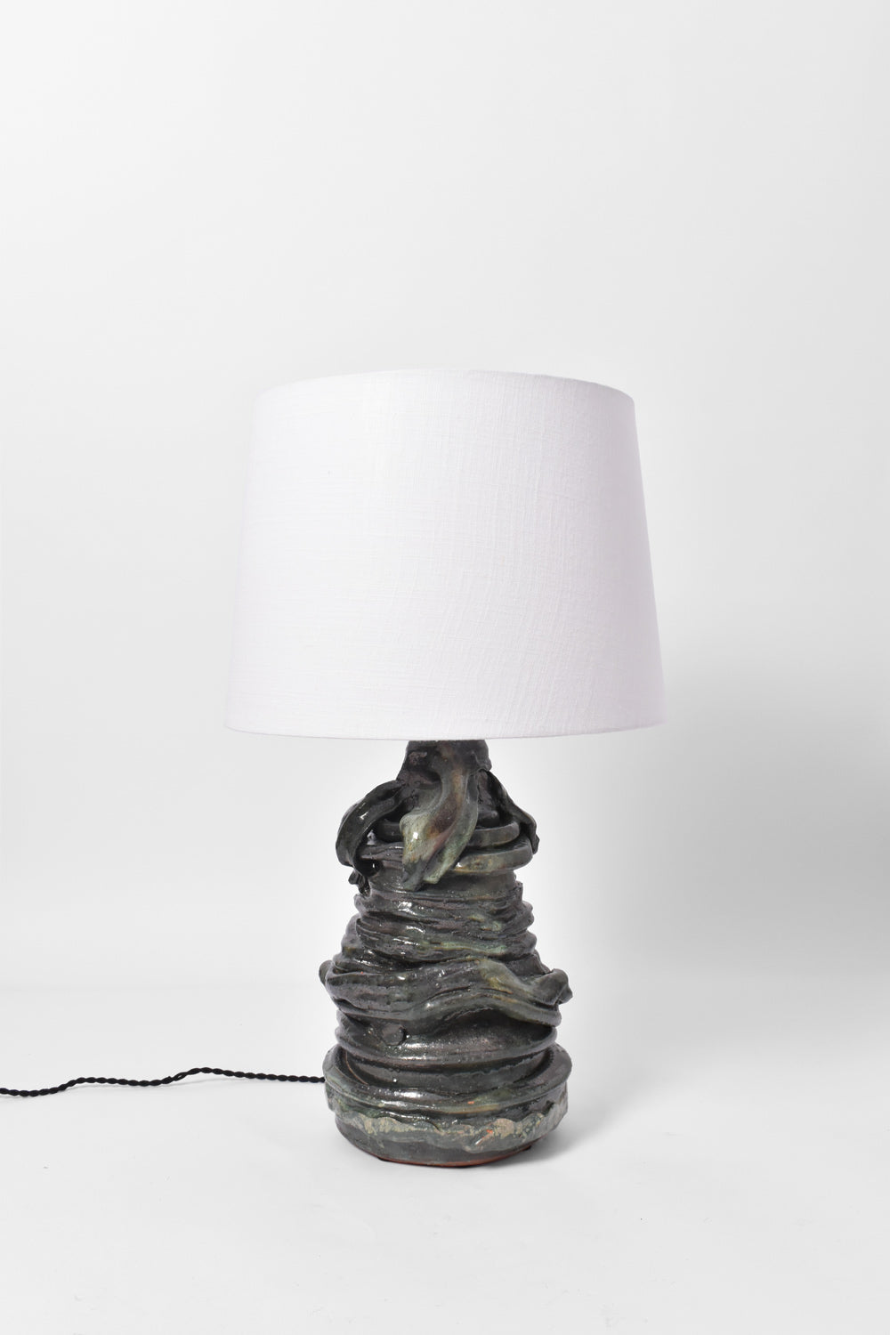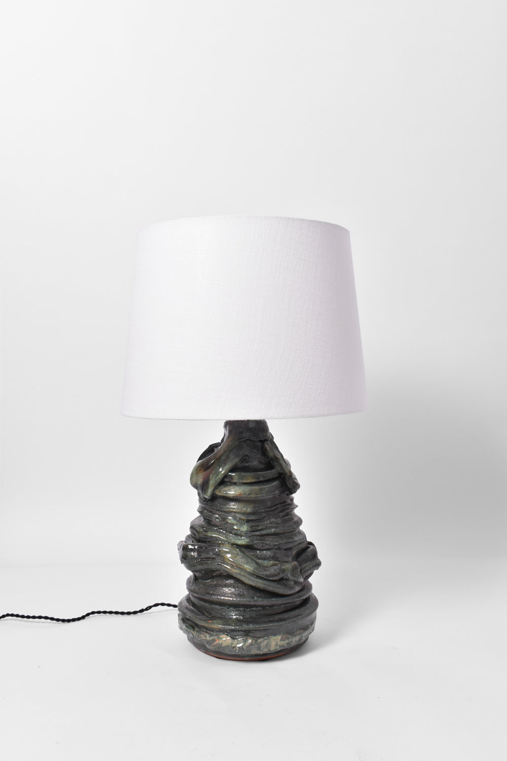 Green and black ceramic lamp with an organic shape, by Helder. Portugal, 2024.