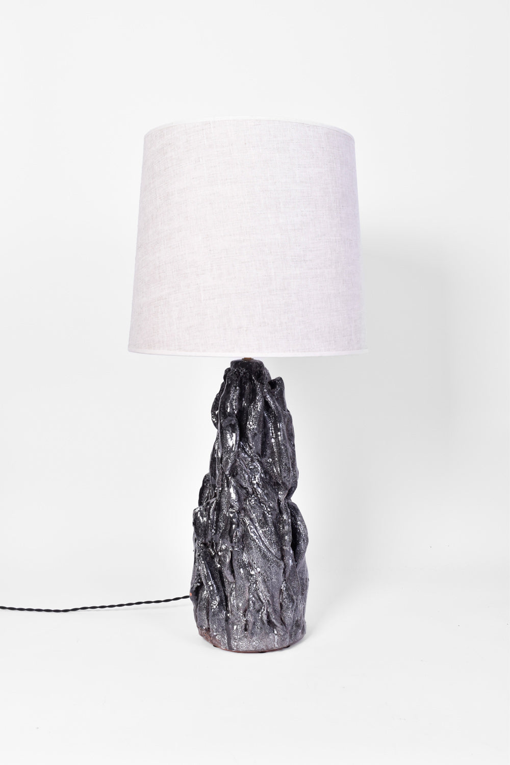 Helder grey ceramic lamp with an organic texture. Portugal, 2023.