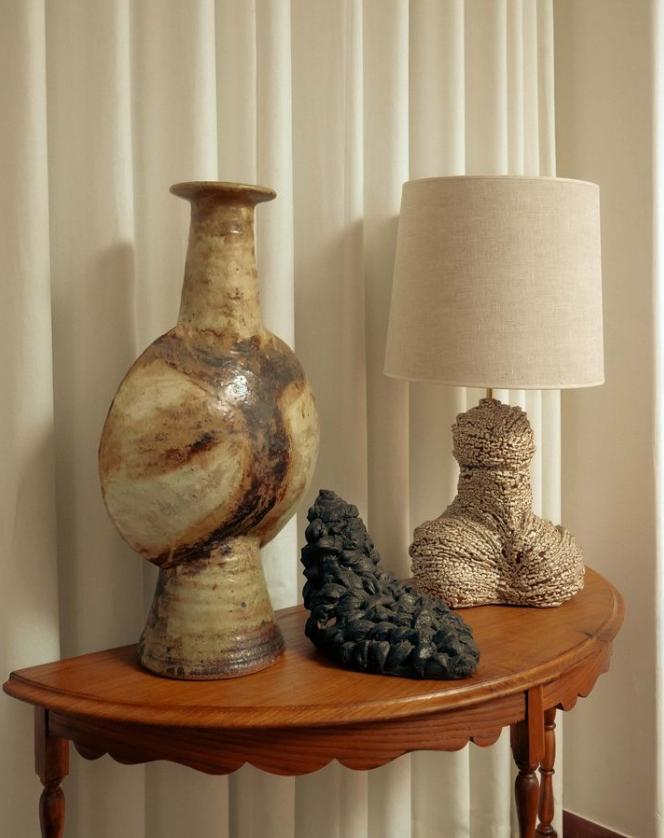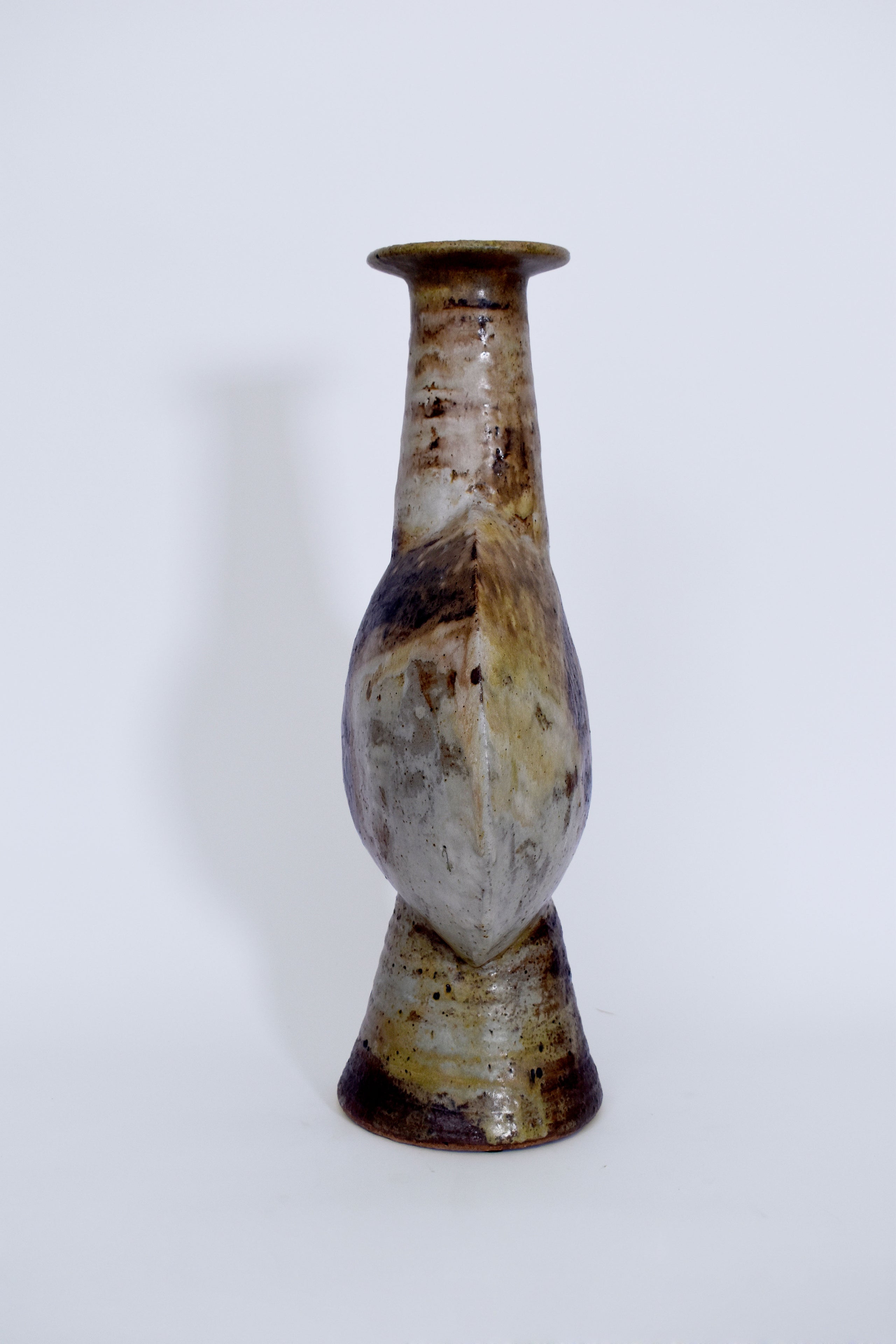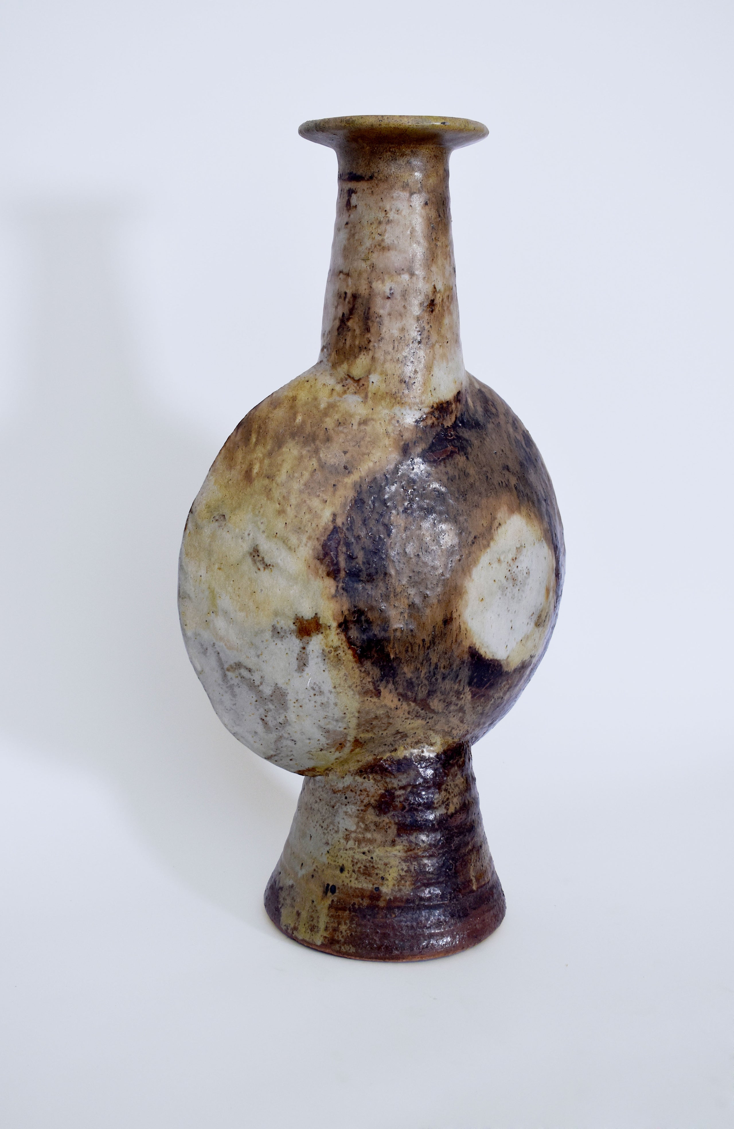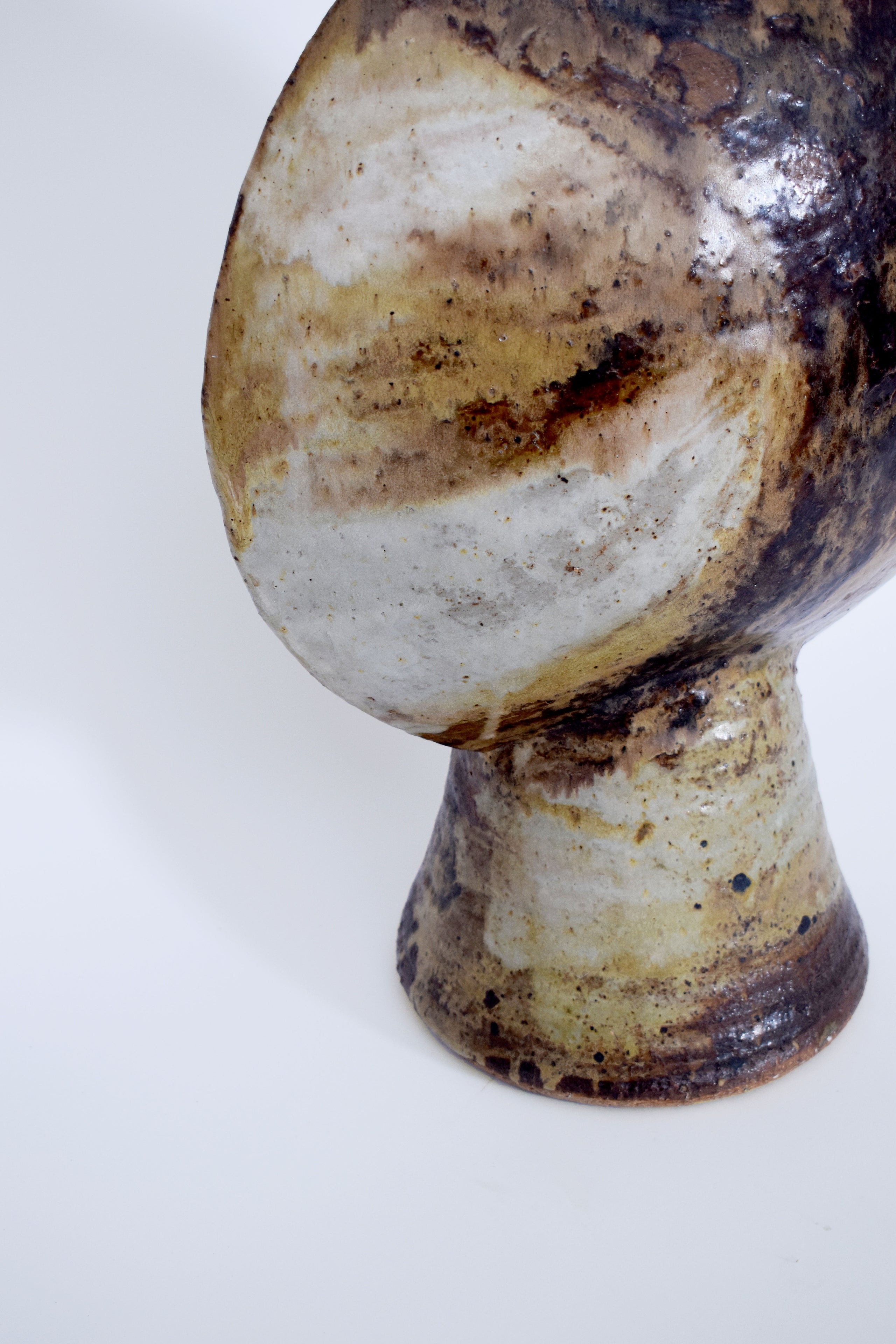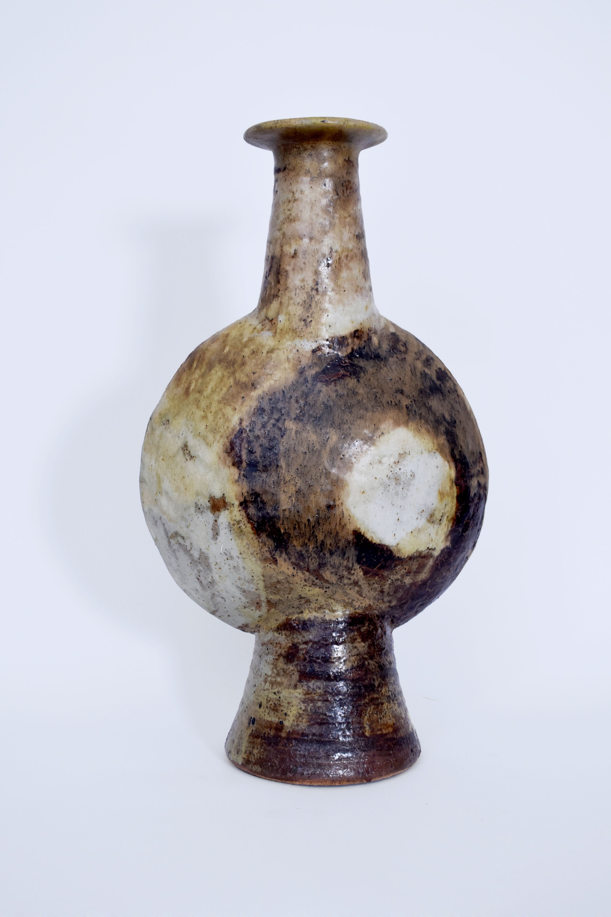 Important clay ceramic vase, truncated cone shaped base supporting a flattened ball surmounted by a narrow collar. France, 1970s.