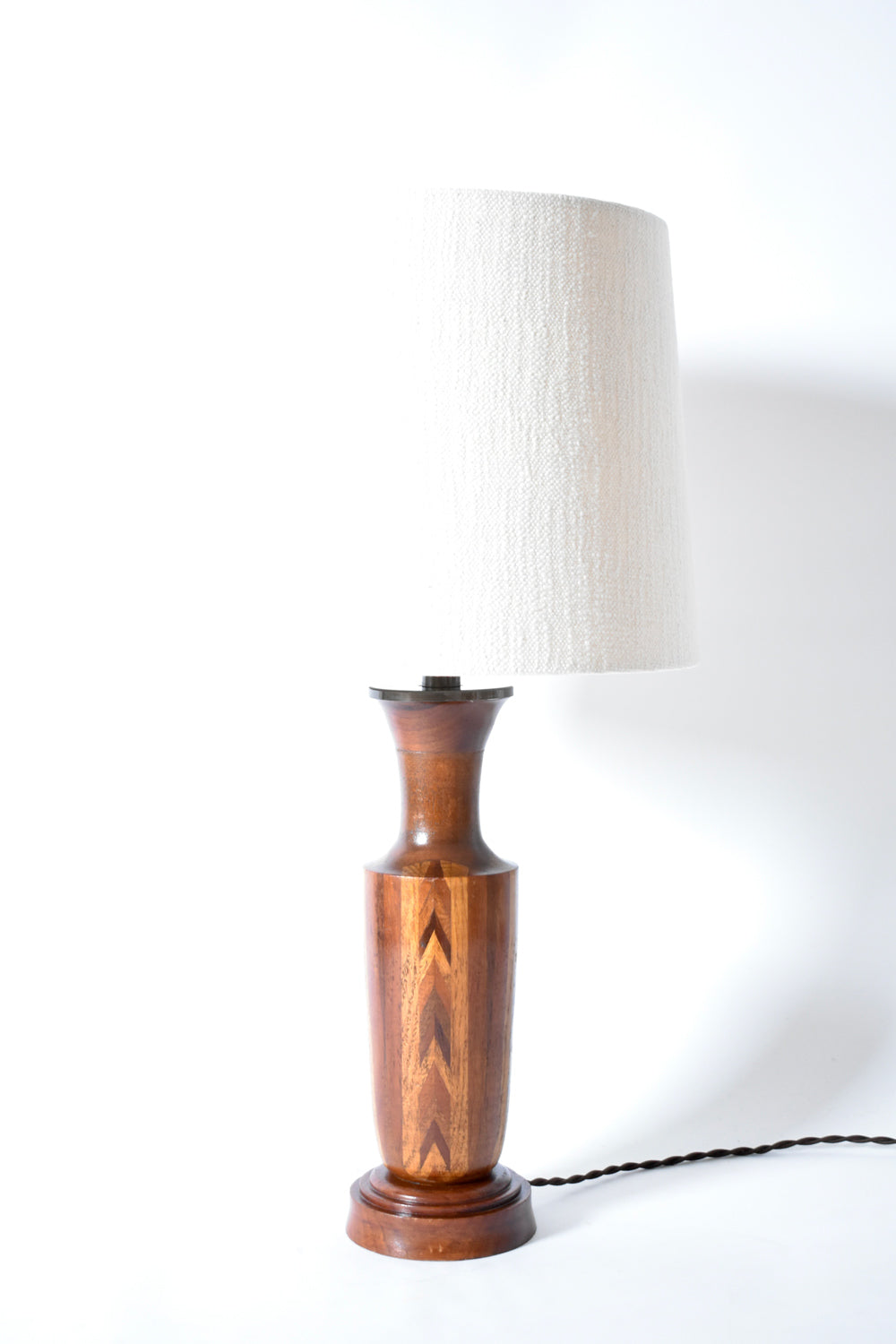 Wooden marquetry lamp drawing a geometrical pattern. Denmark, 1960s.