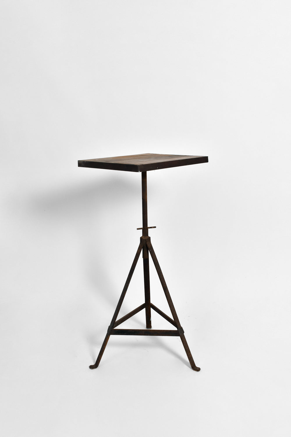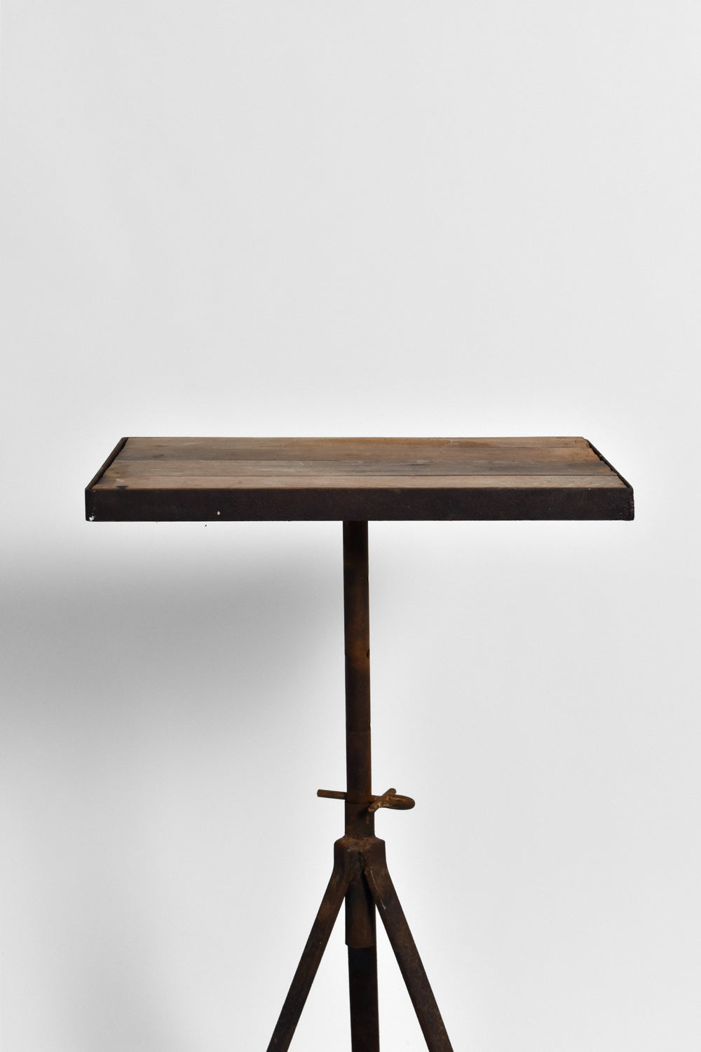 Sculptor's table in wrought iron and wooden top with adjustable height. France, 1950s.