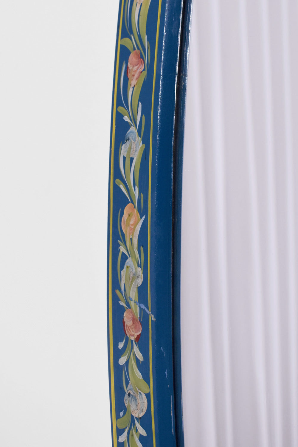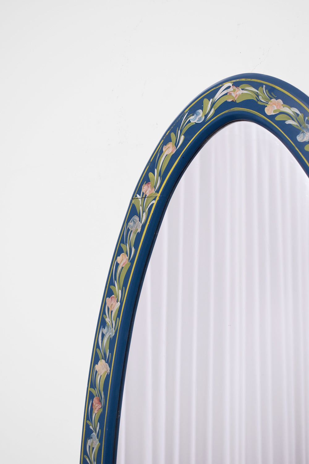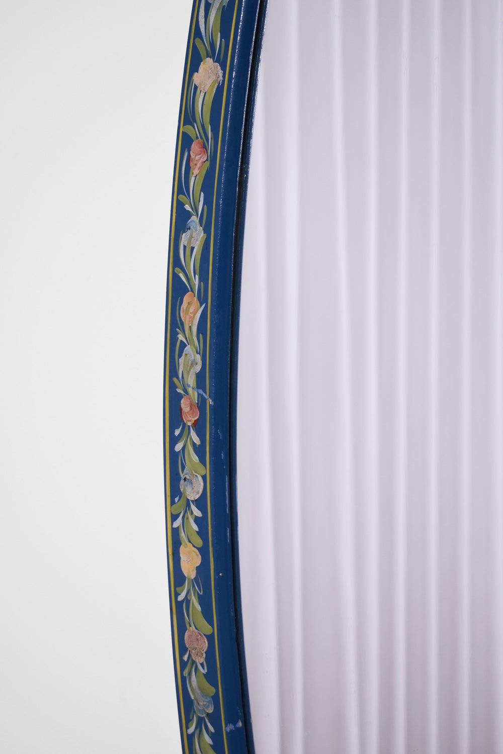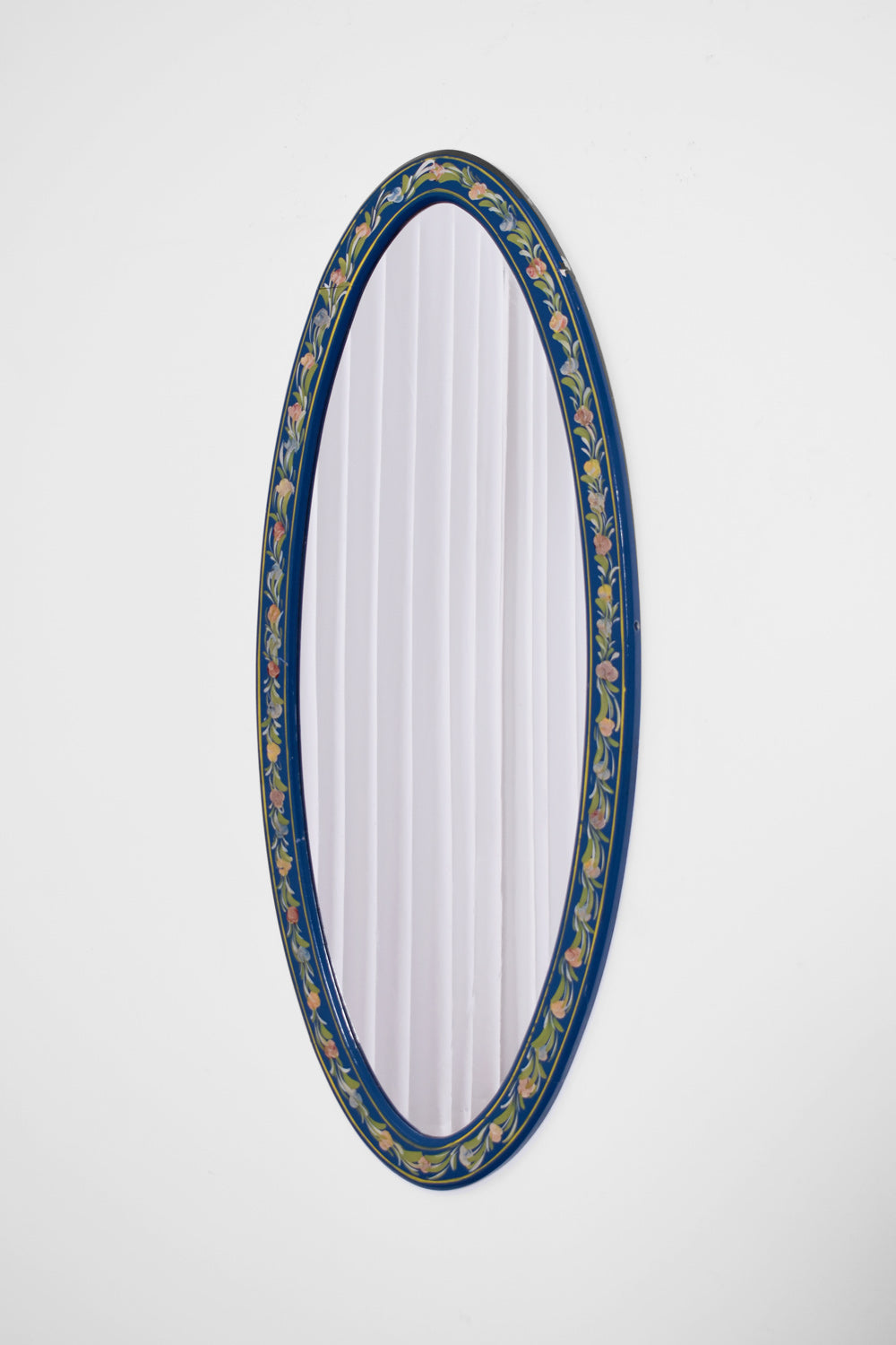 Wooden Alentejano oval mirror painted in blue with a floral pattern.