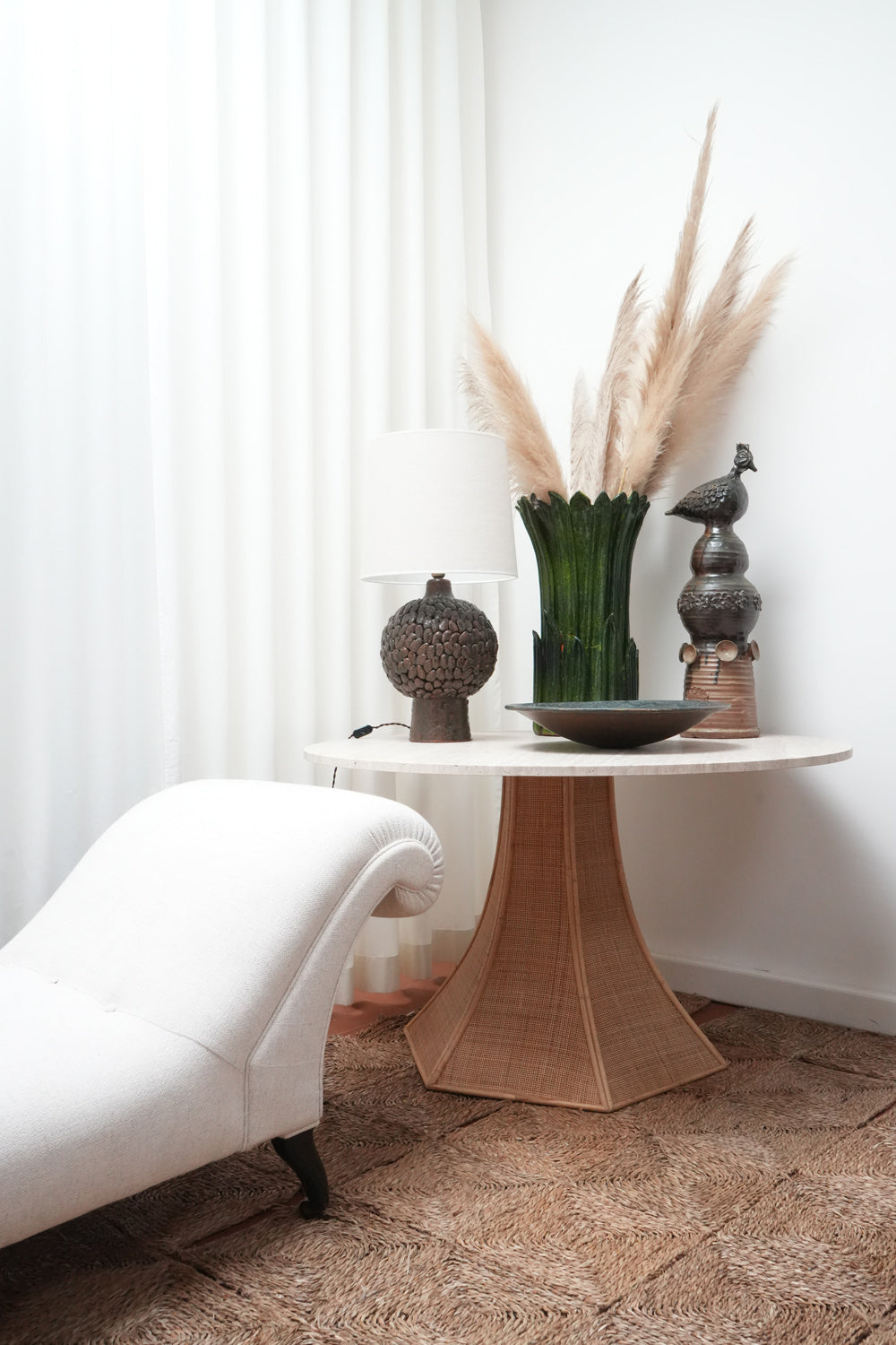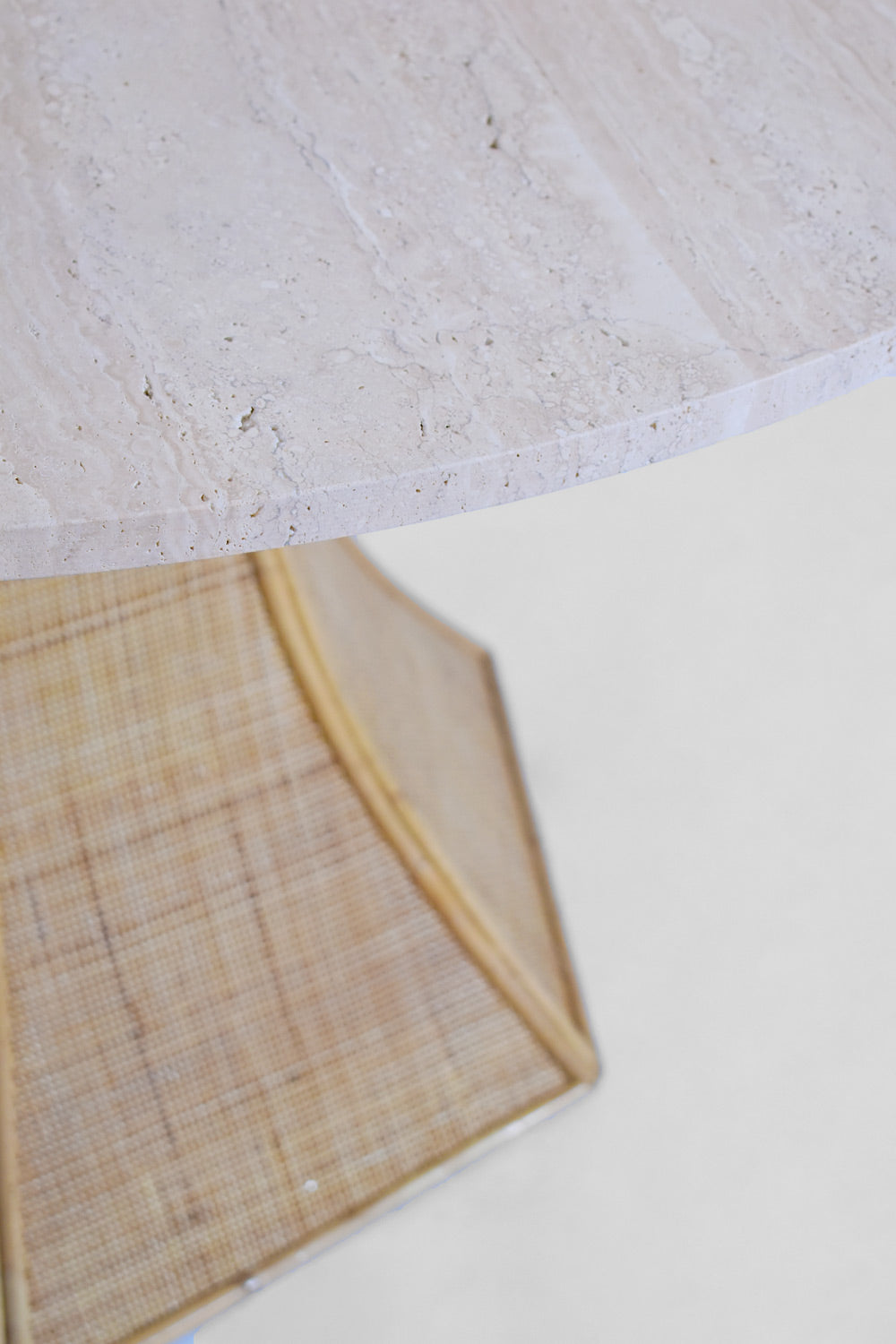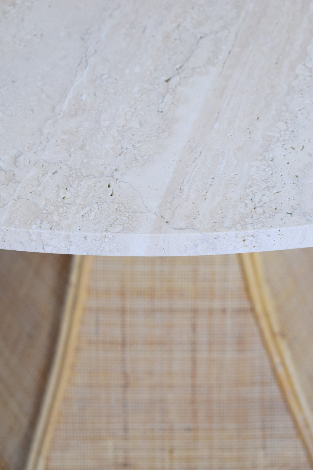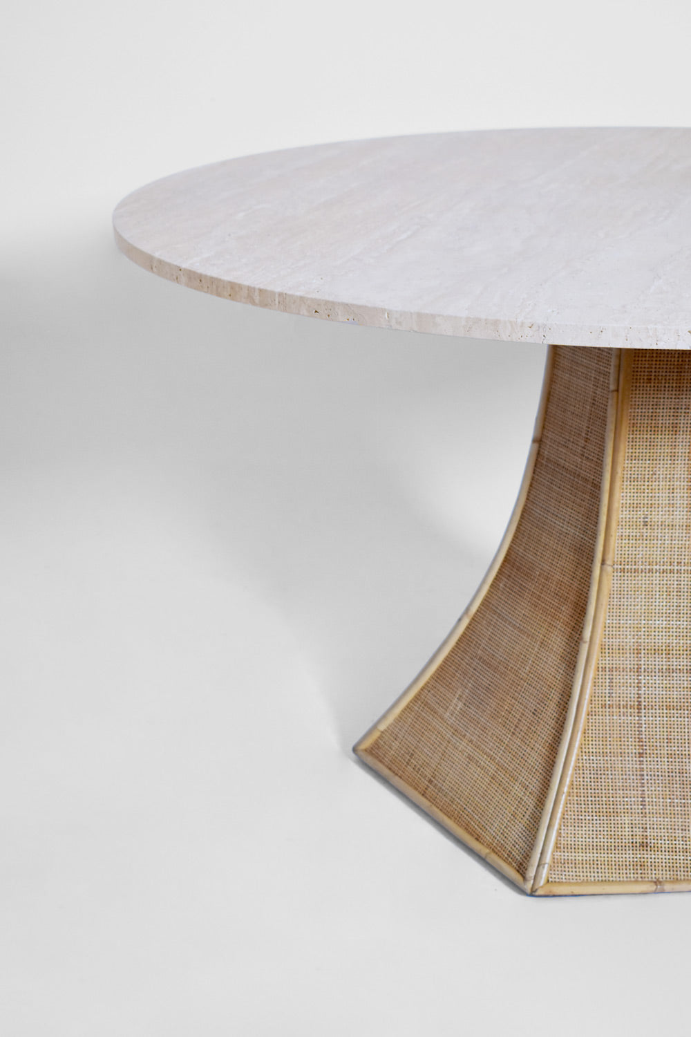 "Caprarola" 120cm rattan and travertine round table, Barracuda Edition.