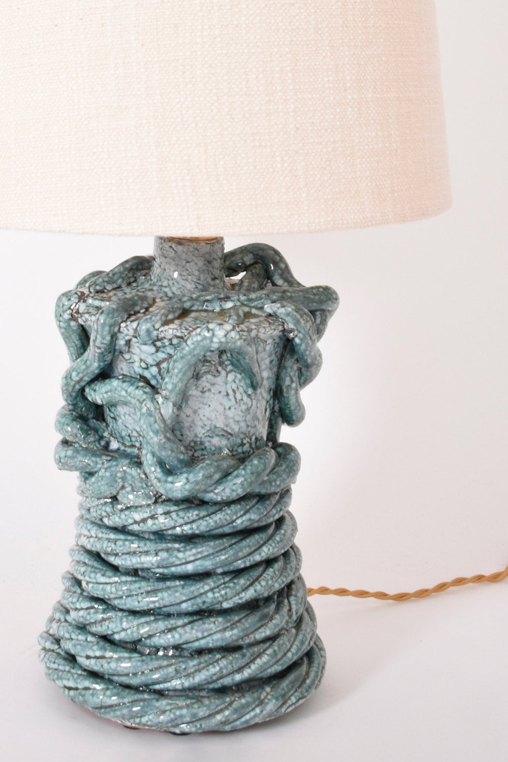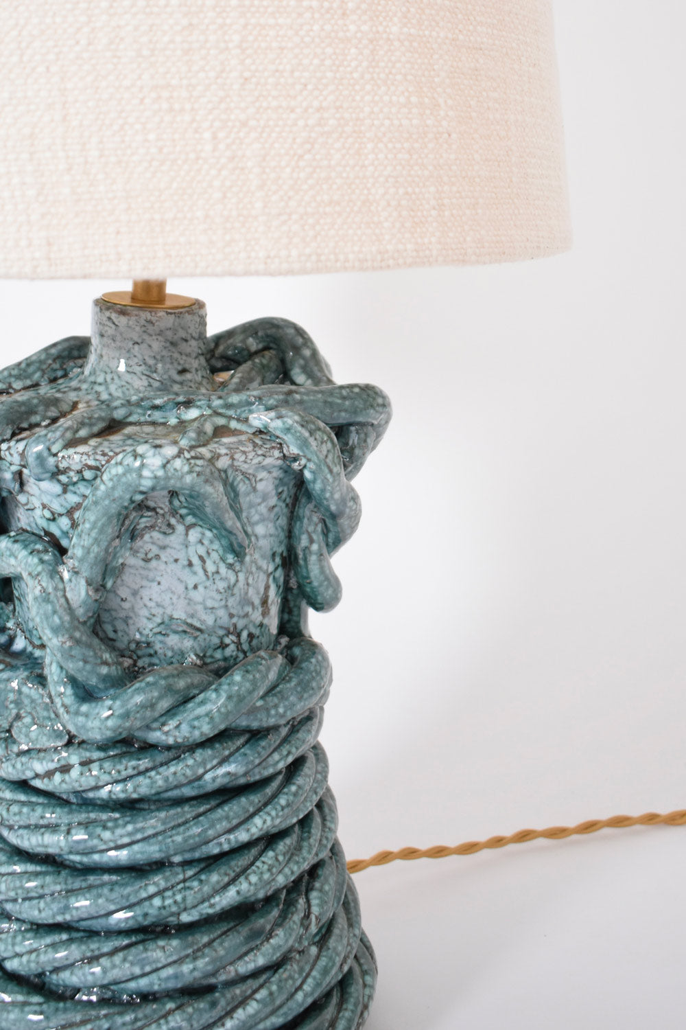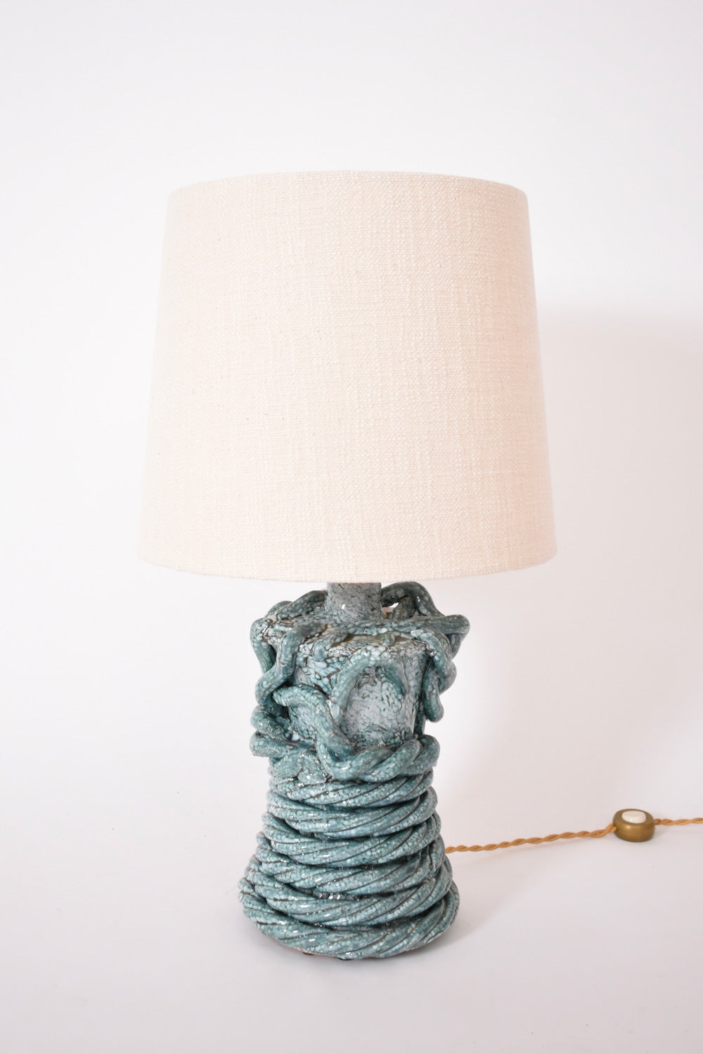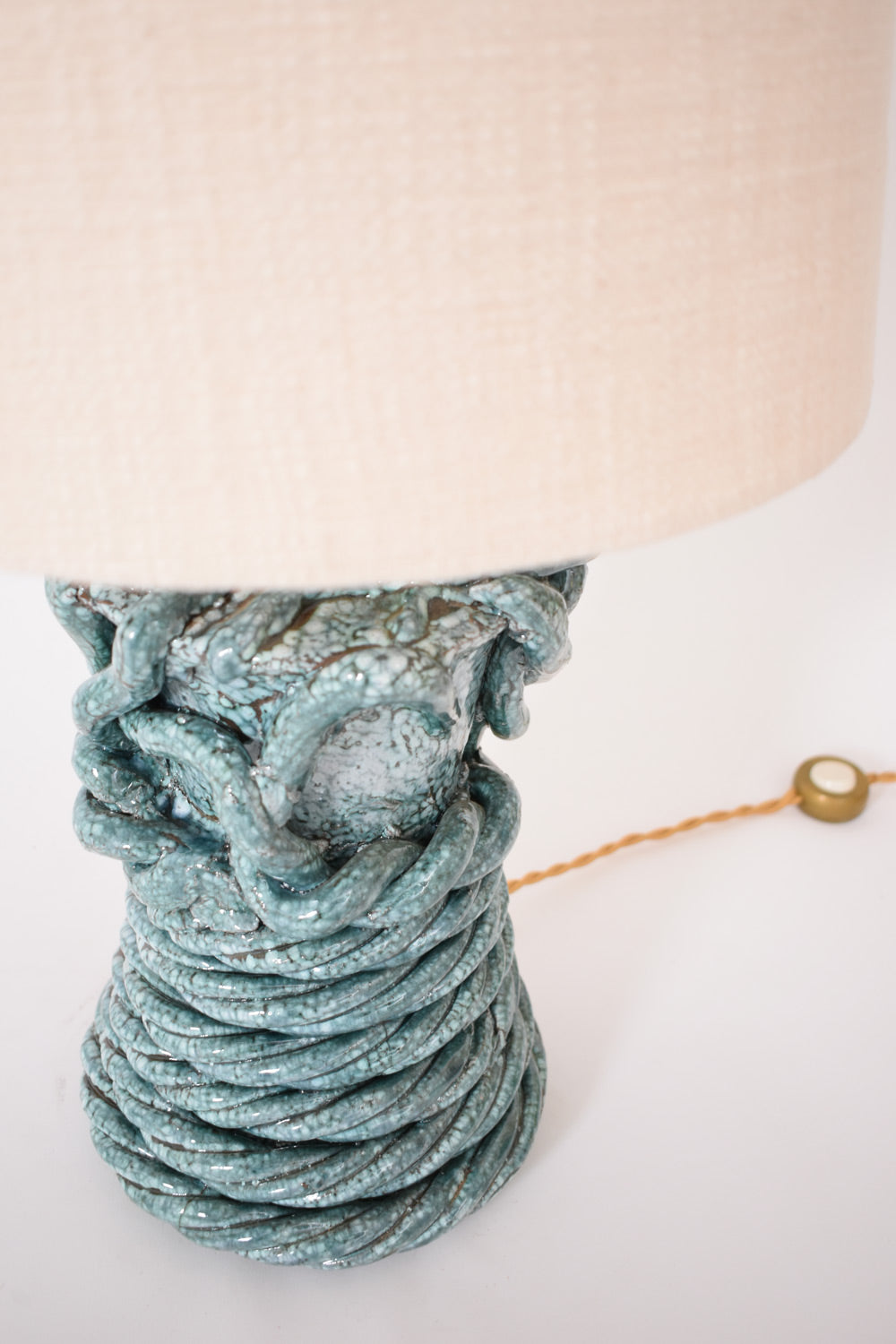 "Kasaï" Gorgone turquoise ceramic lamp 32cm, Barracuda Edition.