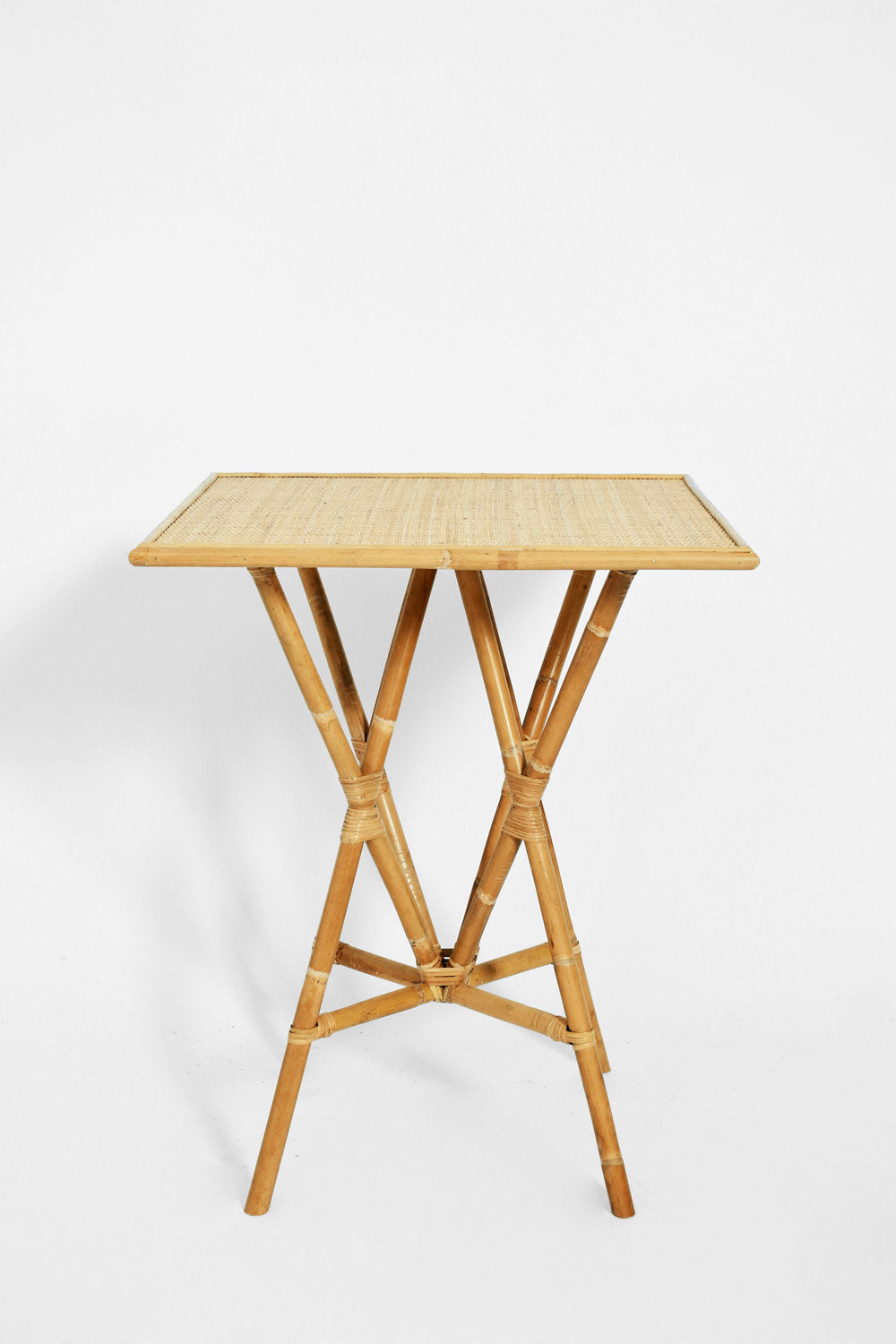 "Arrabida" rattan tea/bedside table standing on four crossed legs, Barracuda edition. Made in Portugal.All Barracuda Edition pieces can be personalised for the convenience of each interior design project.