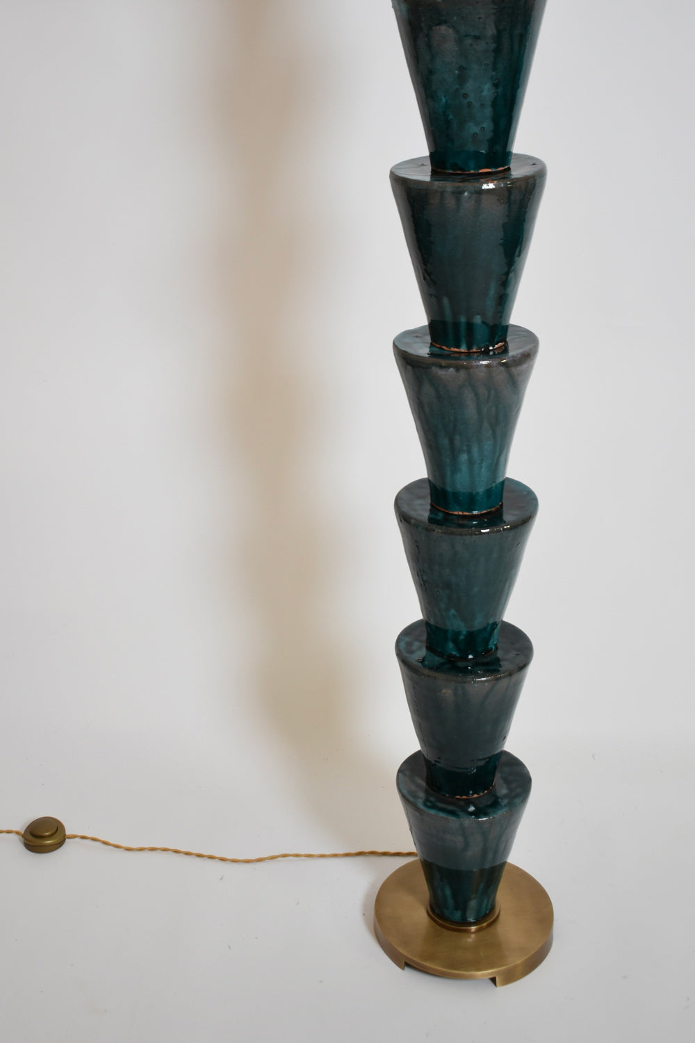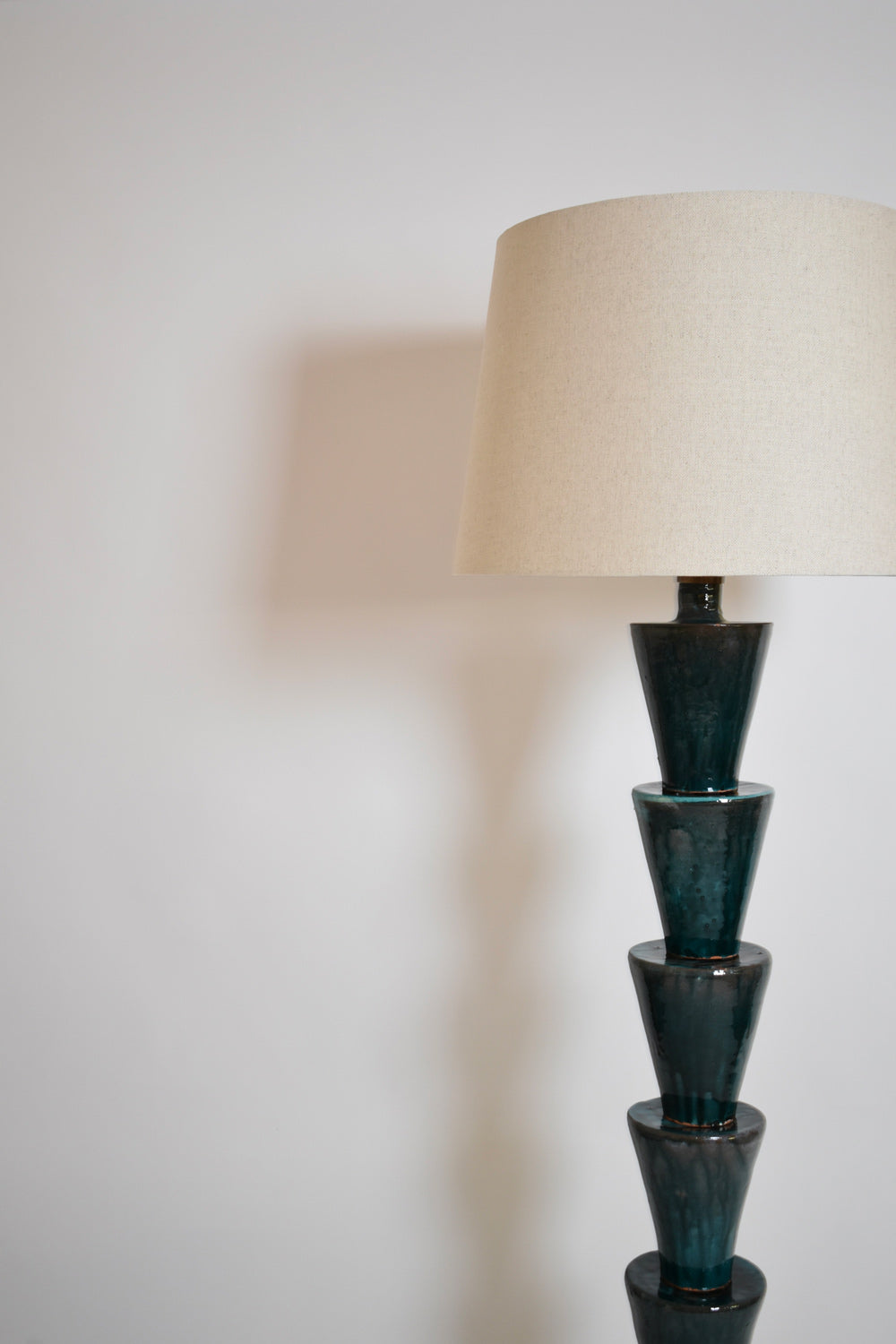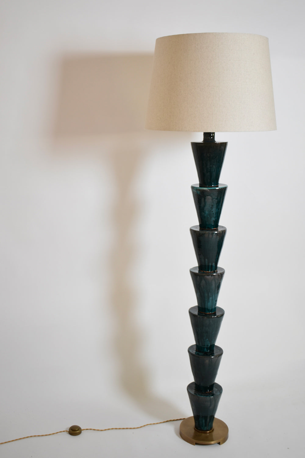 "Nizwa" stoneware glazed floor lamp in shades of dark turquoise, blue and green blue on an iron base. Made in Portugal. Barracuda edition.
