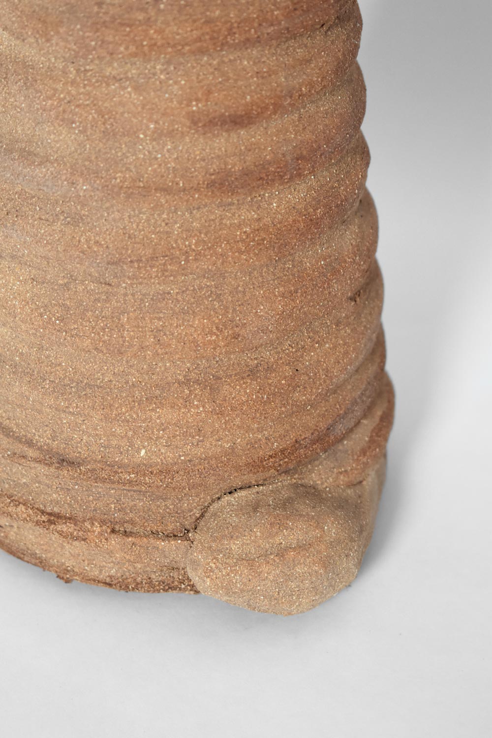 "Teotihuacan" conic stoneware lamp made of spirals ending with a snake face at the bottom, Barracuda edition. Made in Portugal. All Barracuda Edition pieces can be personalised for the convenience of each interior design project.