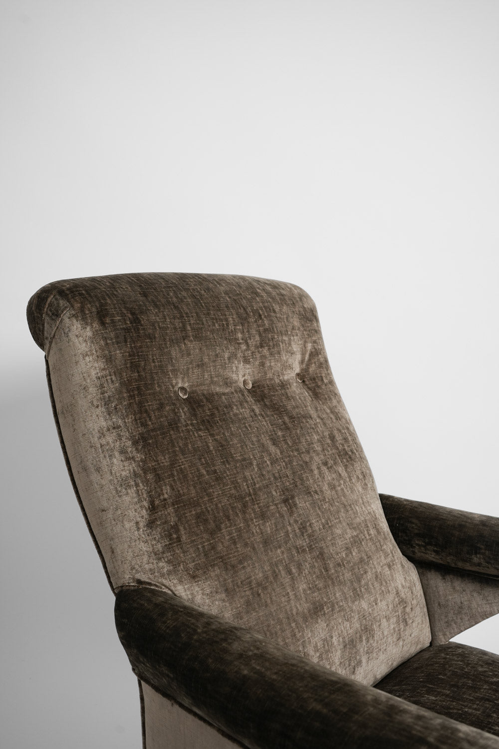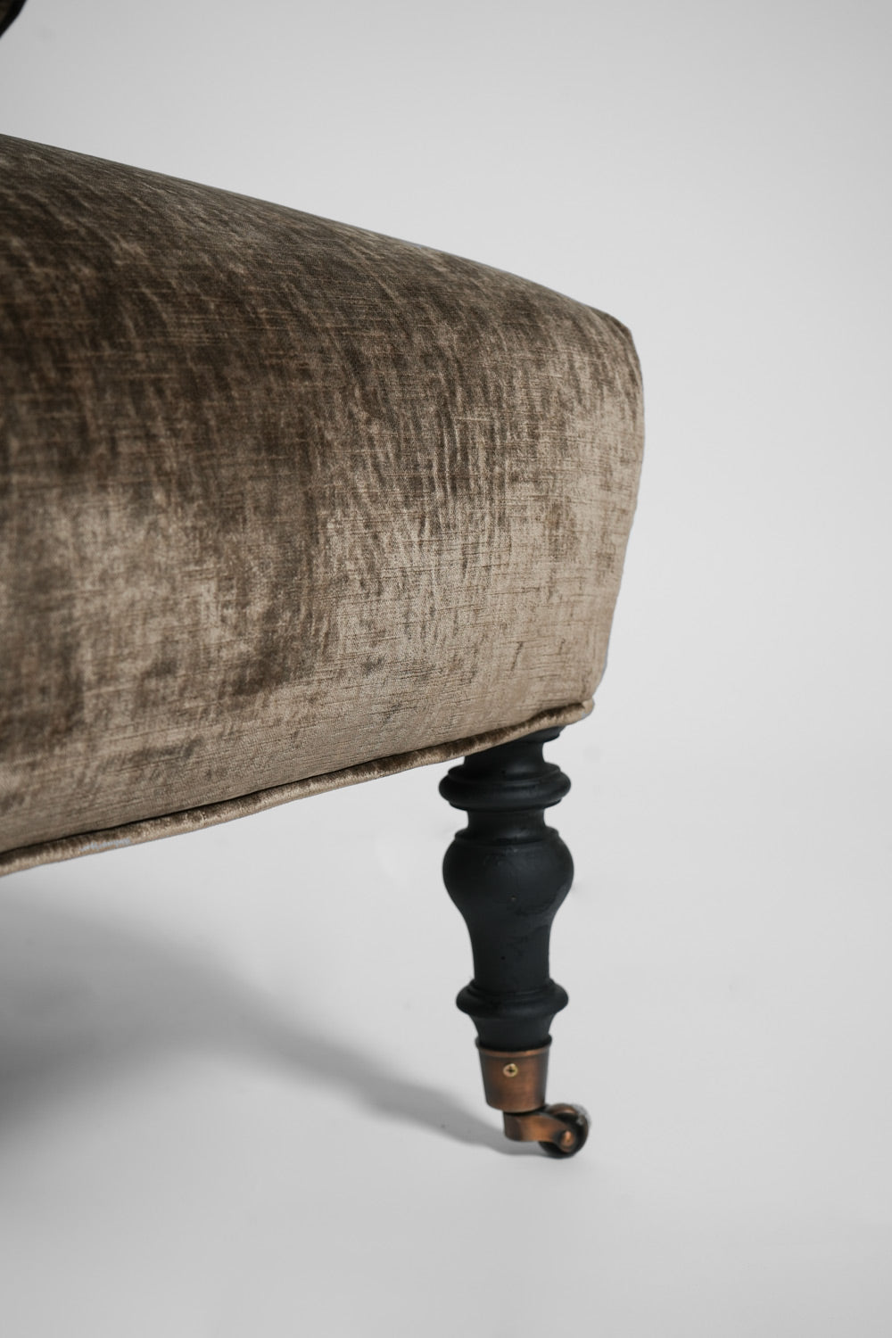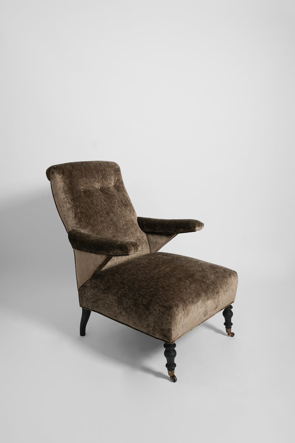 Lounge chair, armchair resting on turned wood feet. England, end of 19th century.