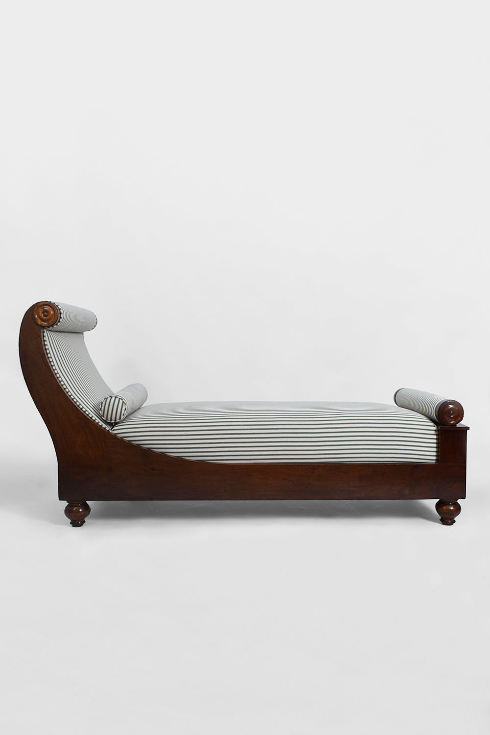Neoclassical lounge chair, daybed, recamier in carved mahogany with the back describing a wave. France, 19th c.