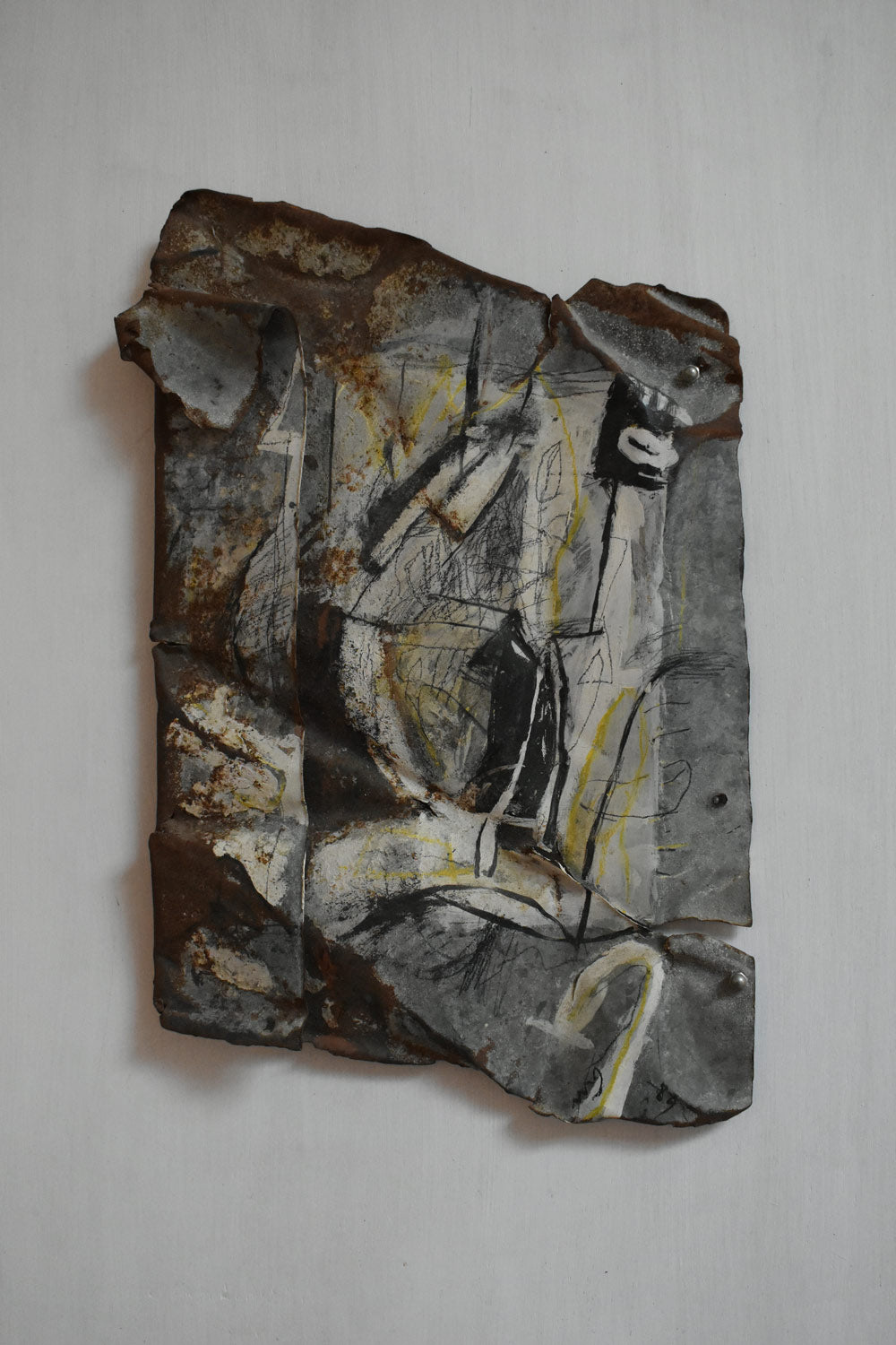 Mixed media artwork painting on metal, by Gen, 1980s.