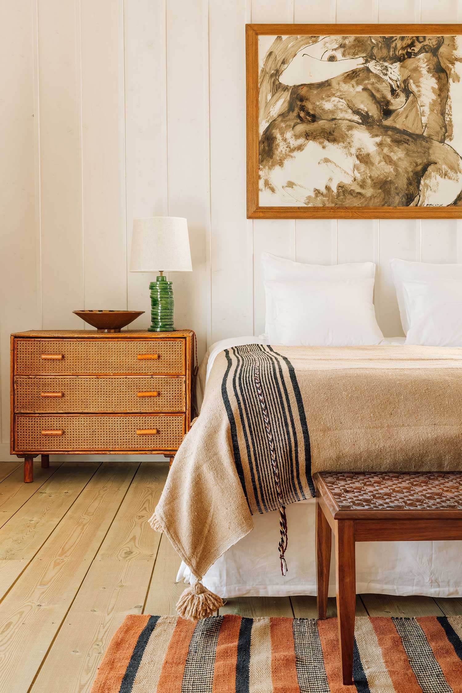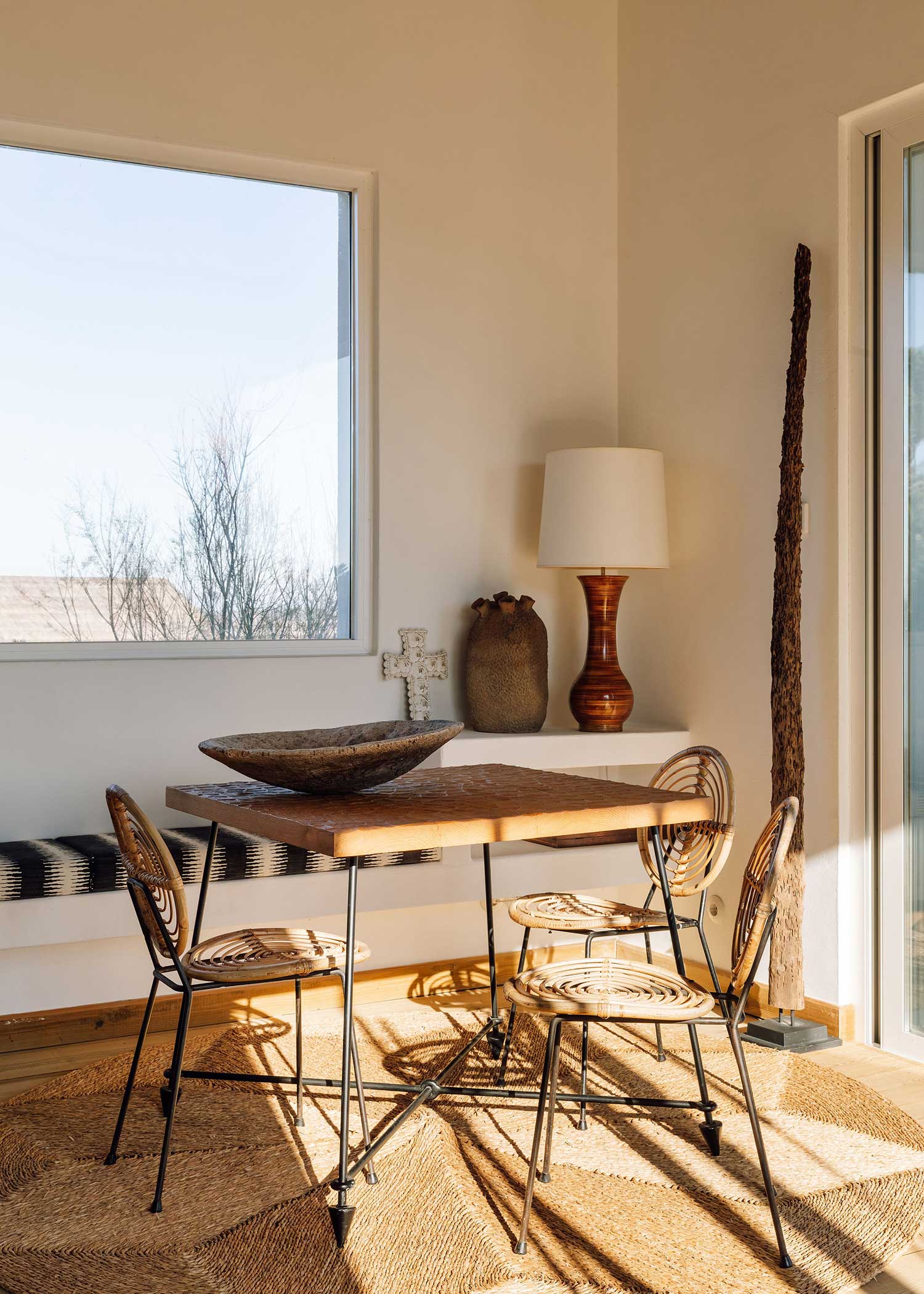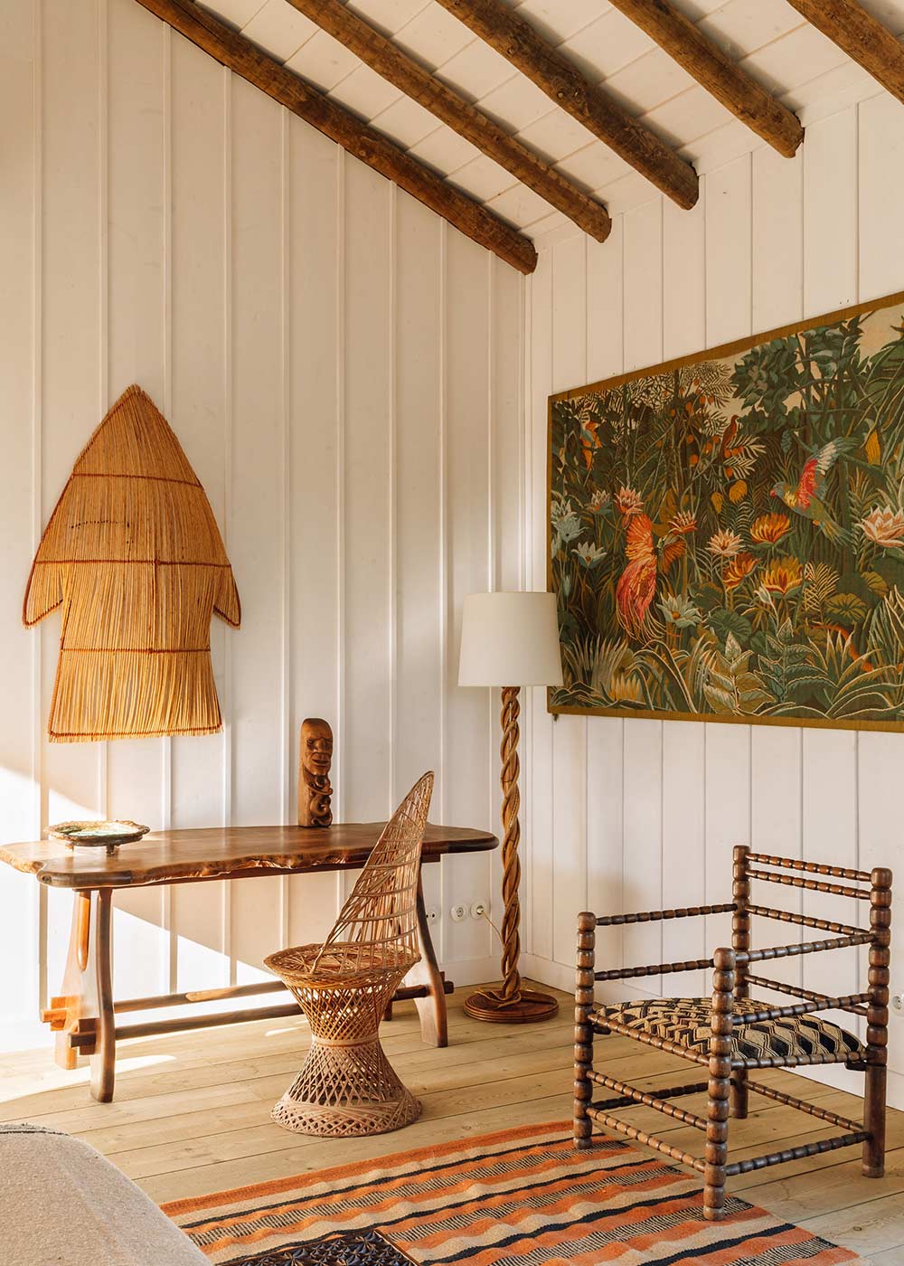 The project consisted of a long process of research to create a harmonious arrangement of colours, materials and forms while adhering to the budget. Neimann was inspired by the place and by the person. Above all, he wanted to give the house an identity through eclectic decor and handpicked objects, mixing 20th-century furniture in general – with pieces ranging from the late 19th-century all the way up to the 1980s – from a variety of sources: shops, antiquarians and fairs in Portugal and abroad, with which he created something unique and unrepeatable.