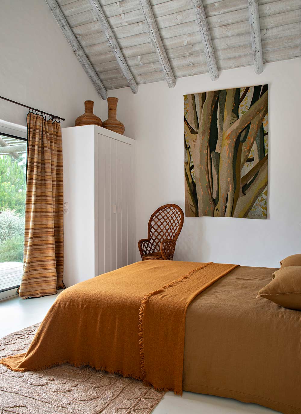 This holiday home belongs to a French couple who stay here whenever they need to escape the city to enjoy the tranquility of nature and the comfort of their house, a typical Comporta-style cabana located amidst the wild nature. The family home needed to be brought alive to make it not only liveable and cosy but in tune with the owners’ preferences and aesthetics.