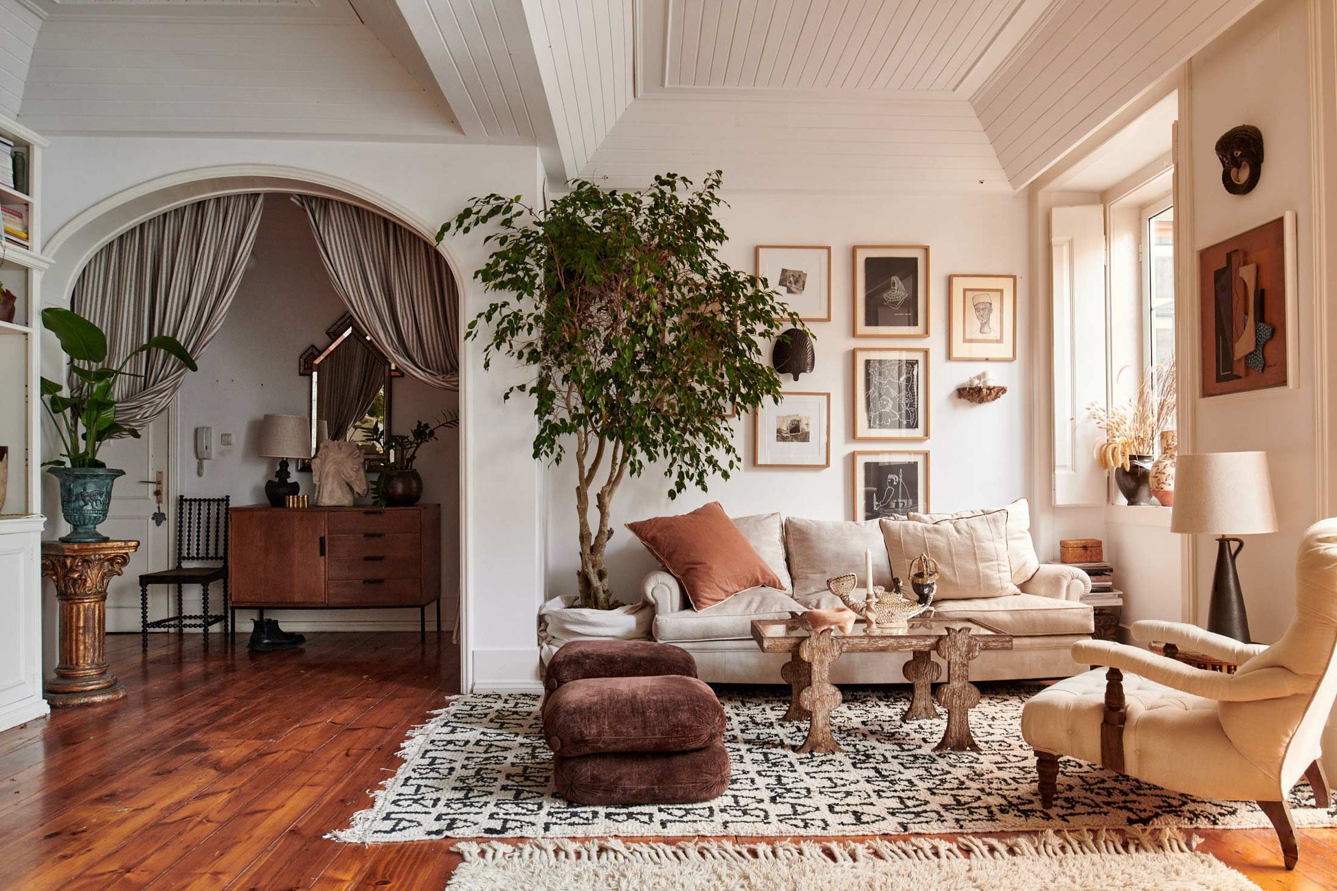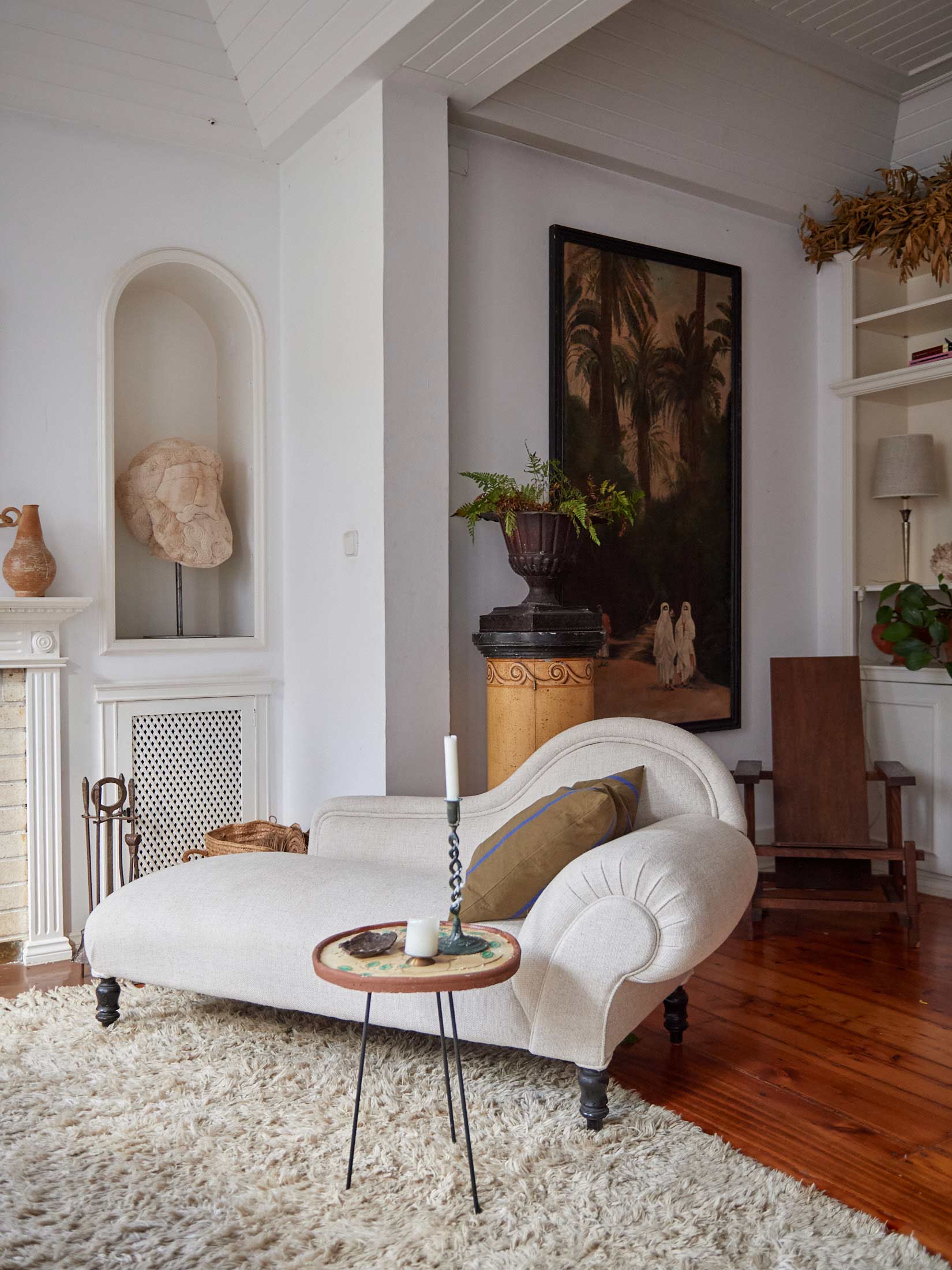 Stepping into this 19th-century apartment, refurbished in the 1980s, in Lisbon. Across 120 square meters of living space, the fusion of old-world charm with 20th-century allure creates a unique country side house atmosphere. A cozy 50 square meter garden adds to the sense of serenity.In this eclectic setting, inspired by travels near and far, objects various cultures and historical periods, create a rich mix of diverse influences.